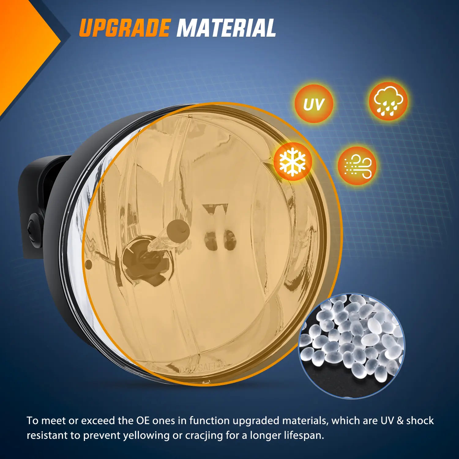To meet or exceed the OE ones in function upgraded materials, which are UV & shock-resistant to prevent yellowing or cracking for a longer lifespan.
