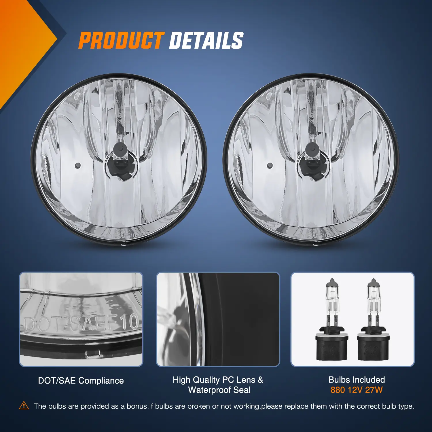 ·Packages Includes: A pair of fog lights (driver's side and passenger's side) with 880 bulbs. Professional installation is highly recommended.