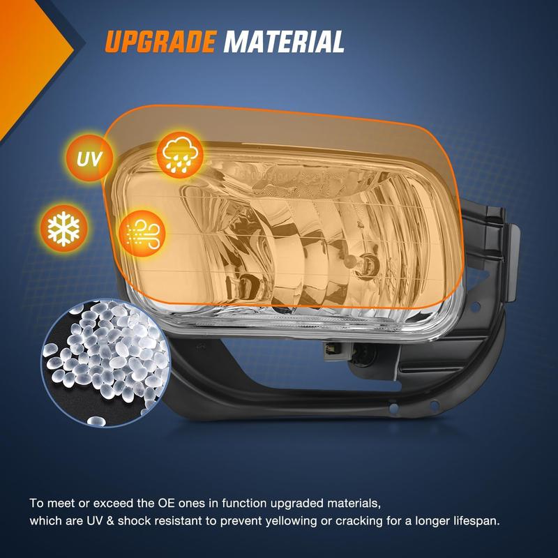 ·Tough and Durable: The well-sealed fog light can prevent moisture or dust from entering the inside of fog lights in all weathers, to ensure excellent weather resistance, and impact resistance. The superior glass lens features higher transmittance, UV and heatresistance, and OEM grade housing is designed to withstand all kinds of weather and terrain. Perfect for replacing broken stock fog lights.