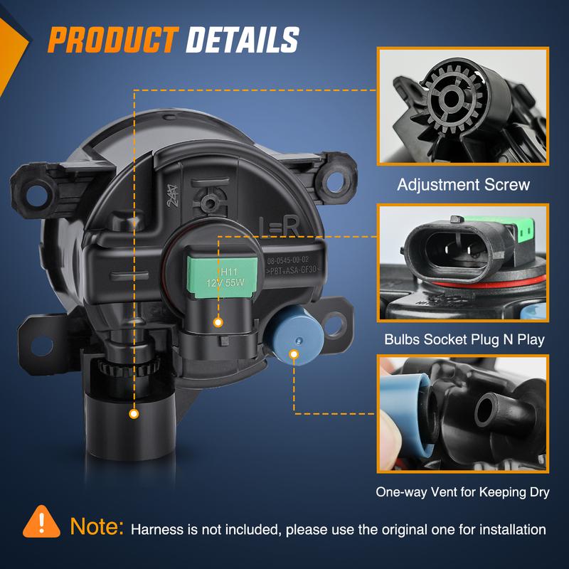 ·DOT Compliance: Our fog lights DOT & SAE compliant to ensure driving safety for you. OEM Style replacement fog light lamps, perfect for replacing broken stock fog lights.