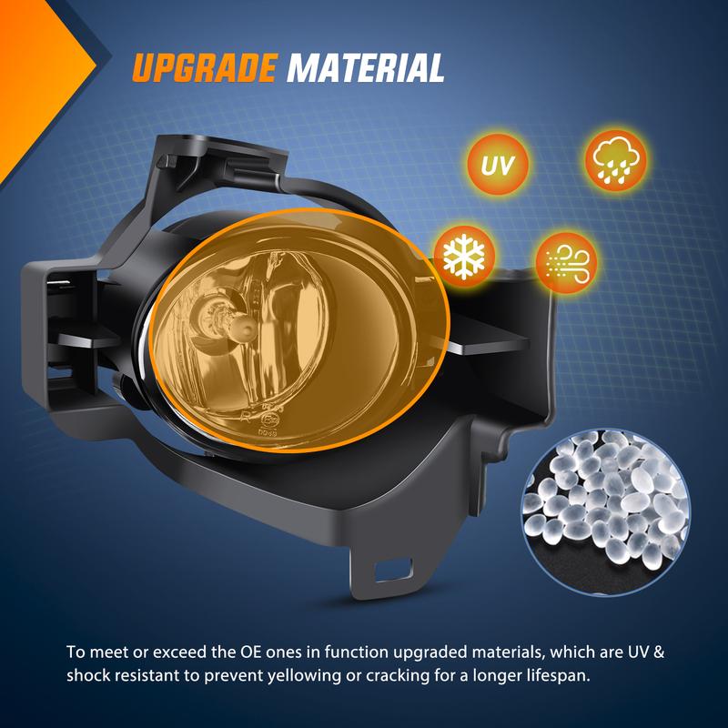 ·Tough and Durable: The well-sealed fog light can prevent moisture or dust from entering the inside of fog lights in all weathers, to ensure excellent weather resistance, and impact resistance. The superior glass lens features higher transmittance, UV and heatresistance, and OEM grade housing is designed to withstand all kinds of weather and terrain. Perfect for replacing broken stock fog lights.
