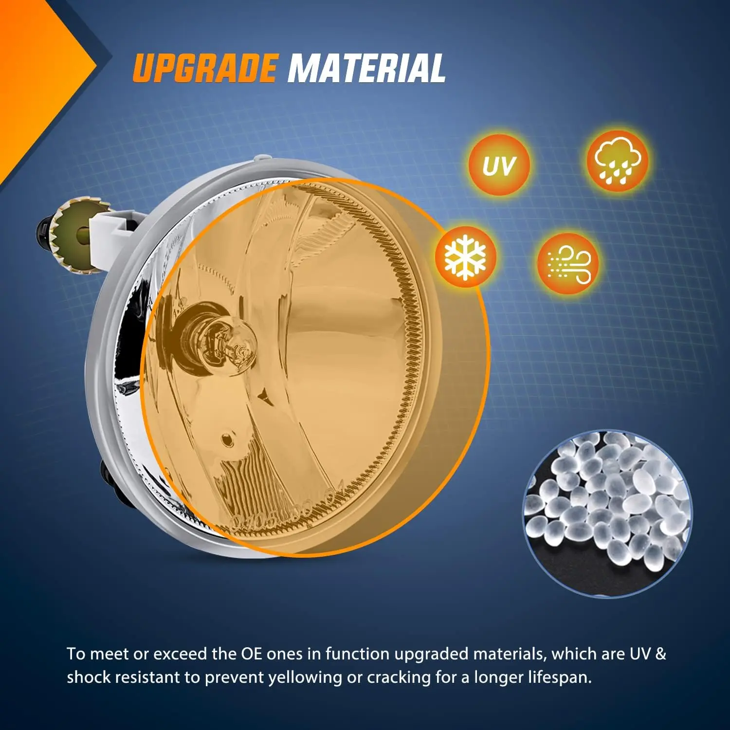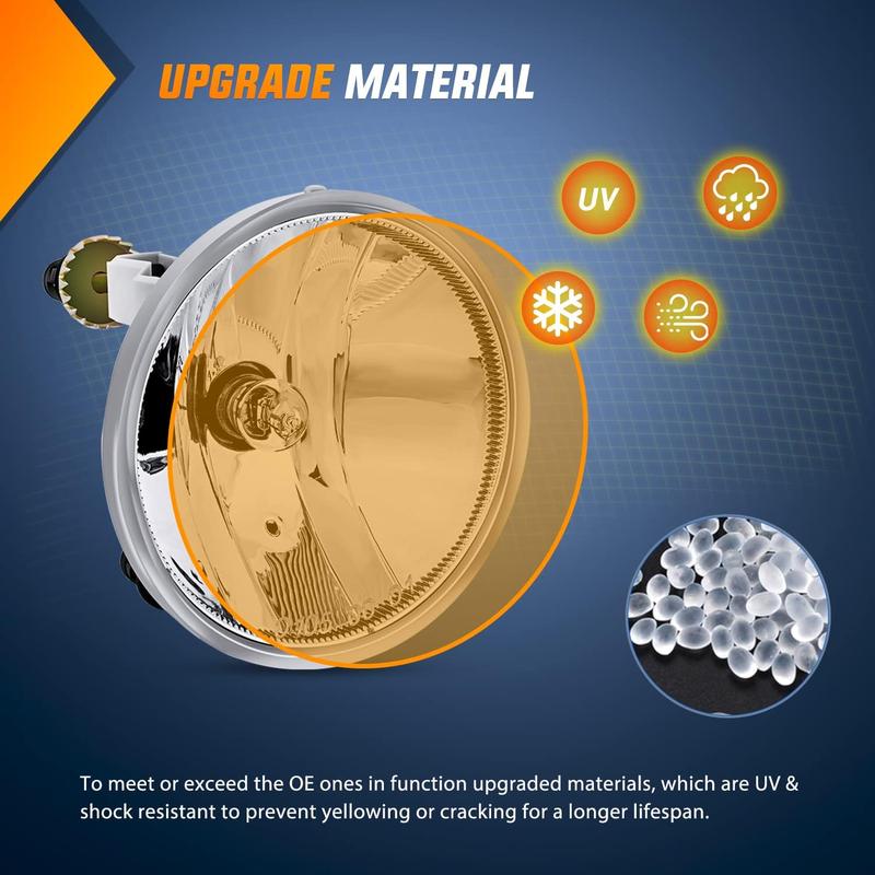 ·Tough and Durable: The well-sealed fog light can prevent moisture or dust from entering the inside of fog lights in all weathers, to ensure excellent weather resistance, and impact resistance. The superior glass lens features higher transmittance, UV and heatresistance, and OEM grade housing is designed to withstand all kinds of weather and terrain. Perfect for replacing broken stock fog lights.