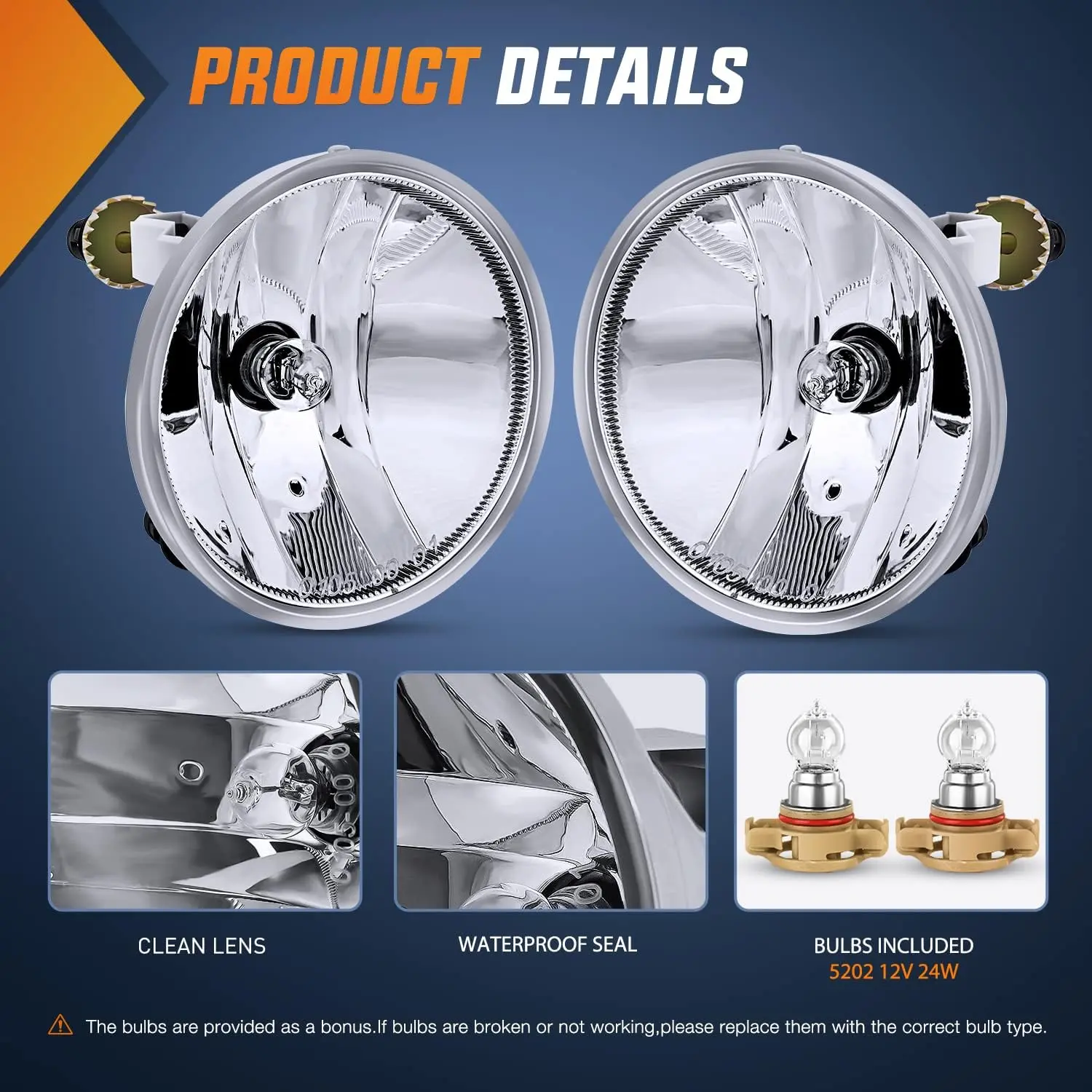 ·Packages: Comes with a pair of fog lights (driver's side and passenger's side), 5202 bulbs. Professional installation is highly recommended.