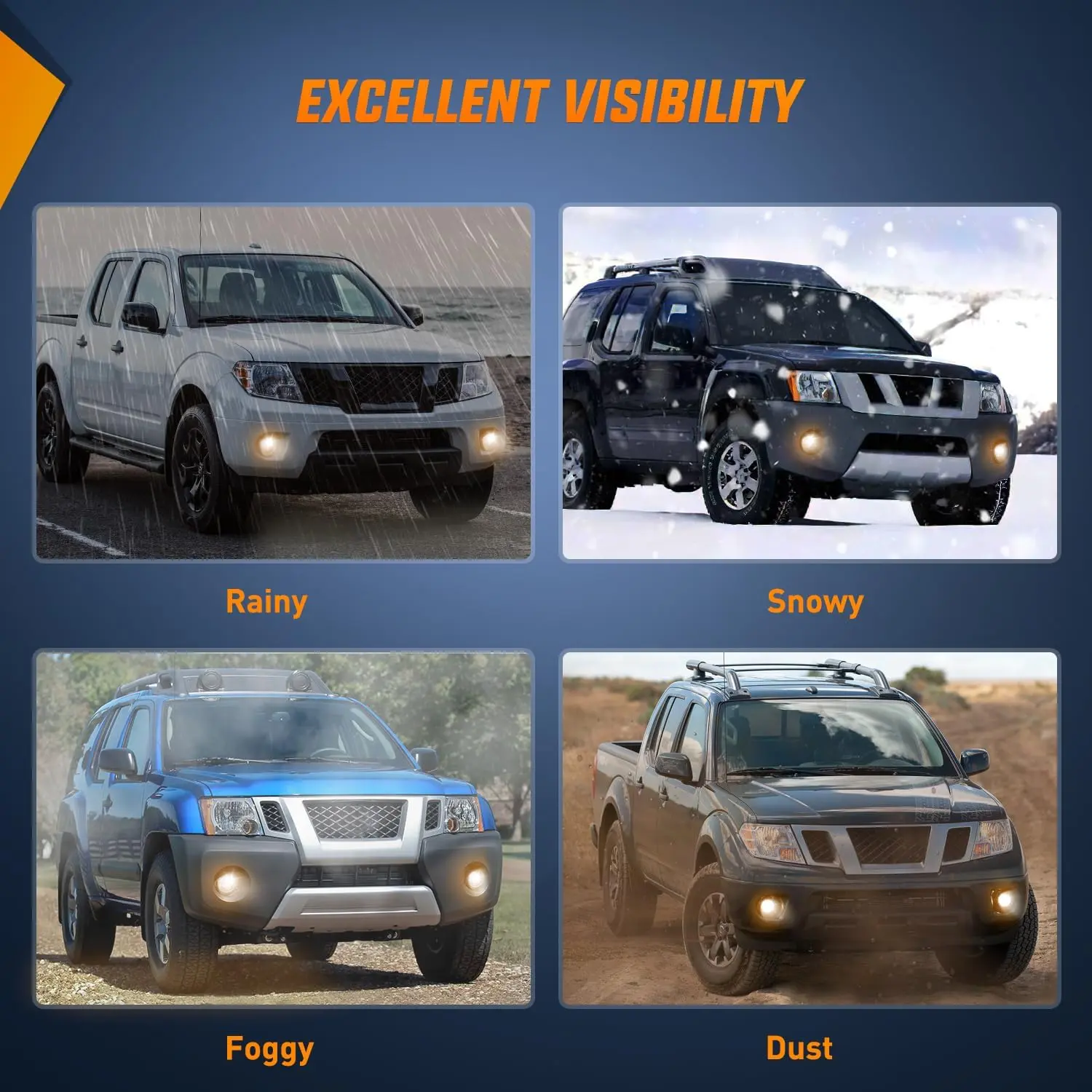 ·Vehicle Fitment: The fog lights are compatible with 2010-2019 Nissan Frontier with plastic bumper, 2005-2015 Nissan Xterra with plastic bumper. Please Note: Don't fit Xterra / Frontier with metal Chrome Bumper. Provide a factory-installed look when installed, without the need for vehicle modifications. Please confirm the vehicle fitment before ordering.