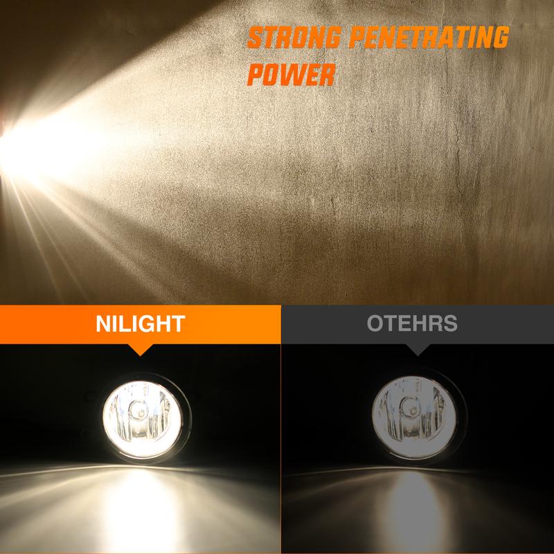 ·Excellent Visibility: 3300K clear light is more penetrating. Our fog lights provide clearer vision for driving in rainy, foggy, snowy, and dusty weather conditions. Nilight fog light can help you to see the road ahead and be noticed by the oncoming drivers and passersby through the dense fog. Get better visibility and enjoy safe and comfortable driving with our fog lights.