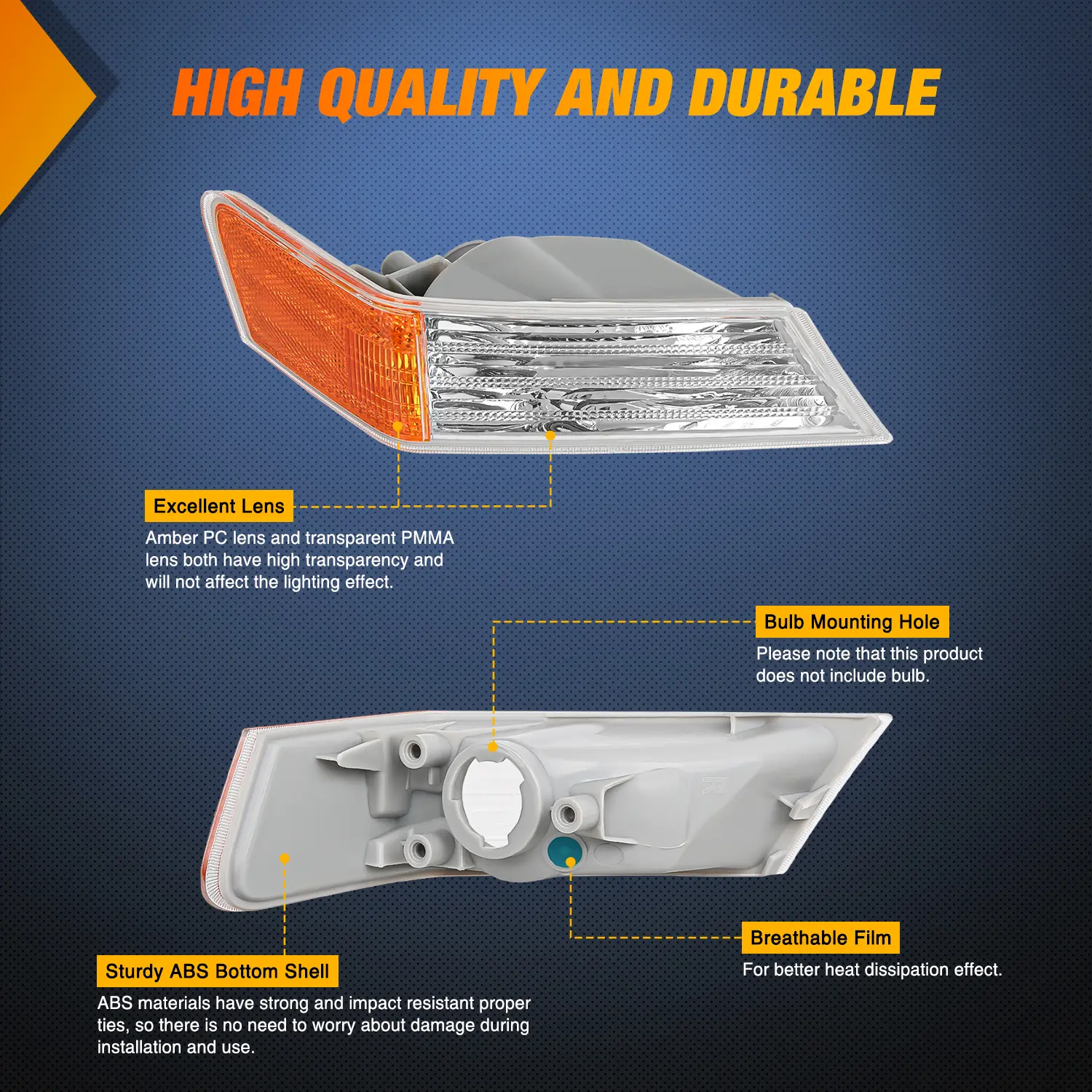 ·Upgraded Materials: Our front turn signals light feature clear PMMA lens, Amber PC lens, and sturdy ABS Bottom Shell. Durable materials and highly transparent lenses will not affect the lighting and are more durable. At the same time, it also has a breathable film that can effectively assist in heat dissipation