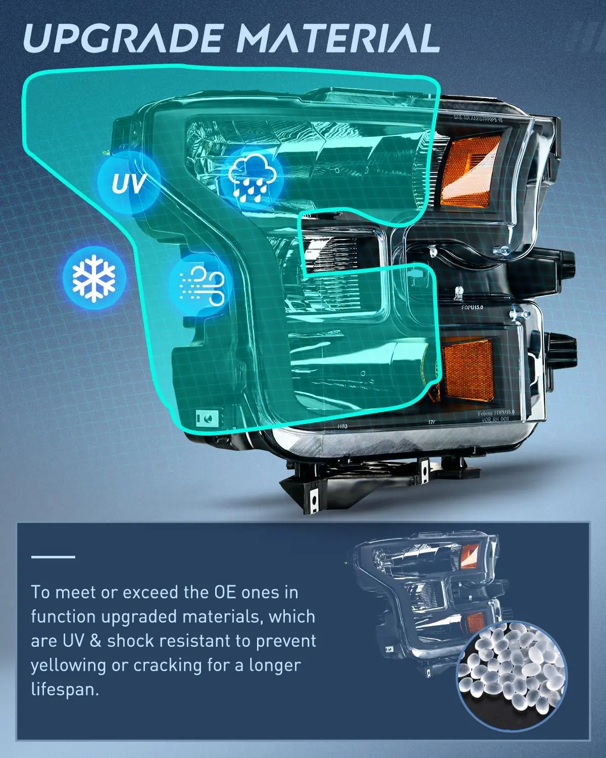 ·Package Includes: 1 Pair of Headlight for 2015 2016 2017 Ford F-150 Headlamp (driver side and passenger side), 1x User Manual