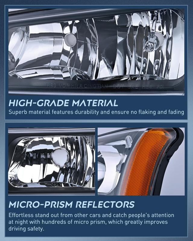 ·Safe Drive: Our 2003-2006 1500/1500 HD/2500 HD/3500 Classic silverado headlights provide clearer and longer vision for driver to see the deer, wild animals, falling rocks or other obstacles at night in advance to reduce the possibility of danger