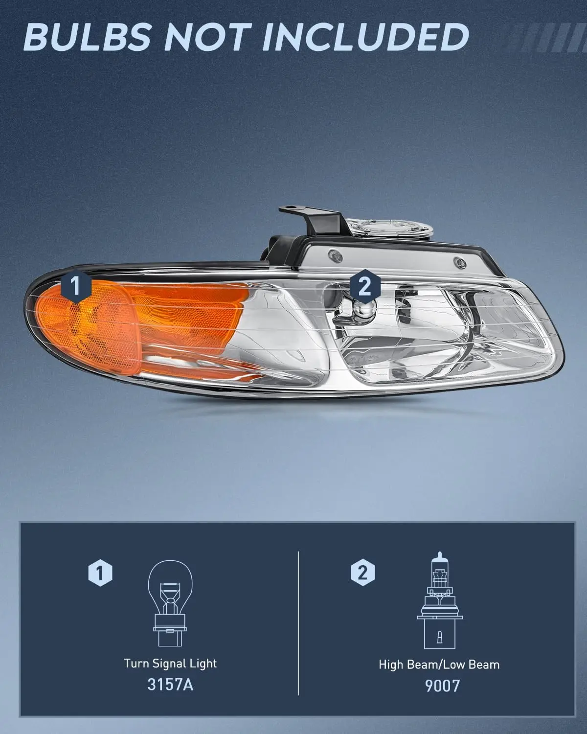 ·Compatibility: The headlights assemblies are compatible with 1996 1997 1998 1999 Chrysler Town & Country 1996 1997 1998 1999 Dodge Caravan 1996 1997 1998 1999 Dodge Grand Caravan 1996 1997 1998 1999 Plymouth Voyager 1996 1997 1998 1999 Plymouth Grand Voyager. NOTE: Only for model Dual, low beam and high beam is one bulb. If your low beam and high beam are two different bulbs, this light will not fit. High/Low beam bulb type: HB5/9007. Bulbs are not included.