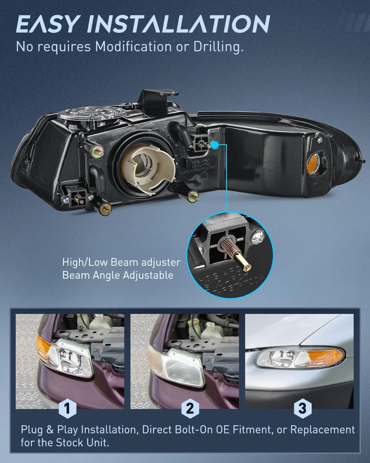 ·Simple Installation: Plug-and-play operation, direct bolt-on OE fitment and replacement for the stock headlight, easily for installation without any drilling or modification.
