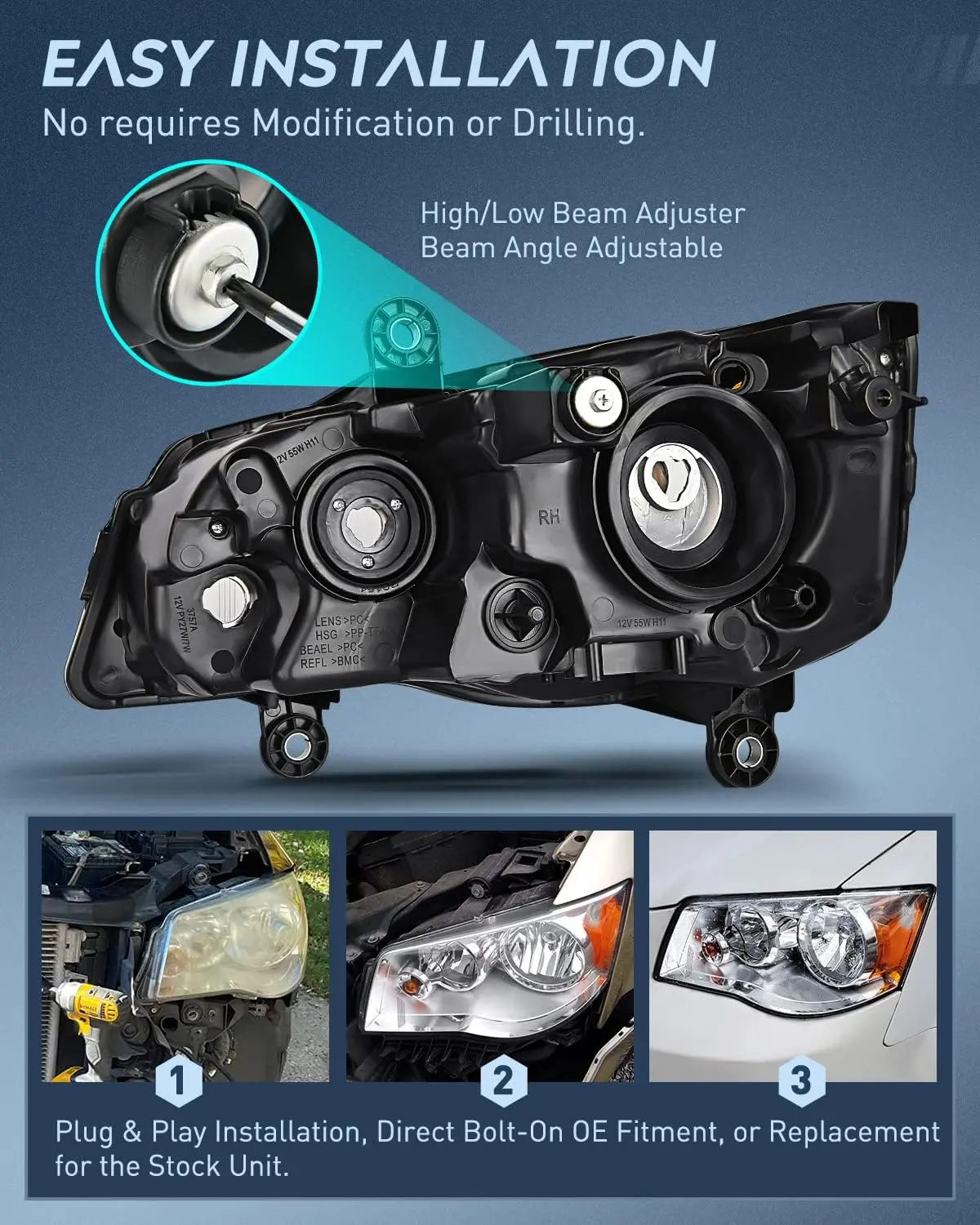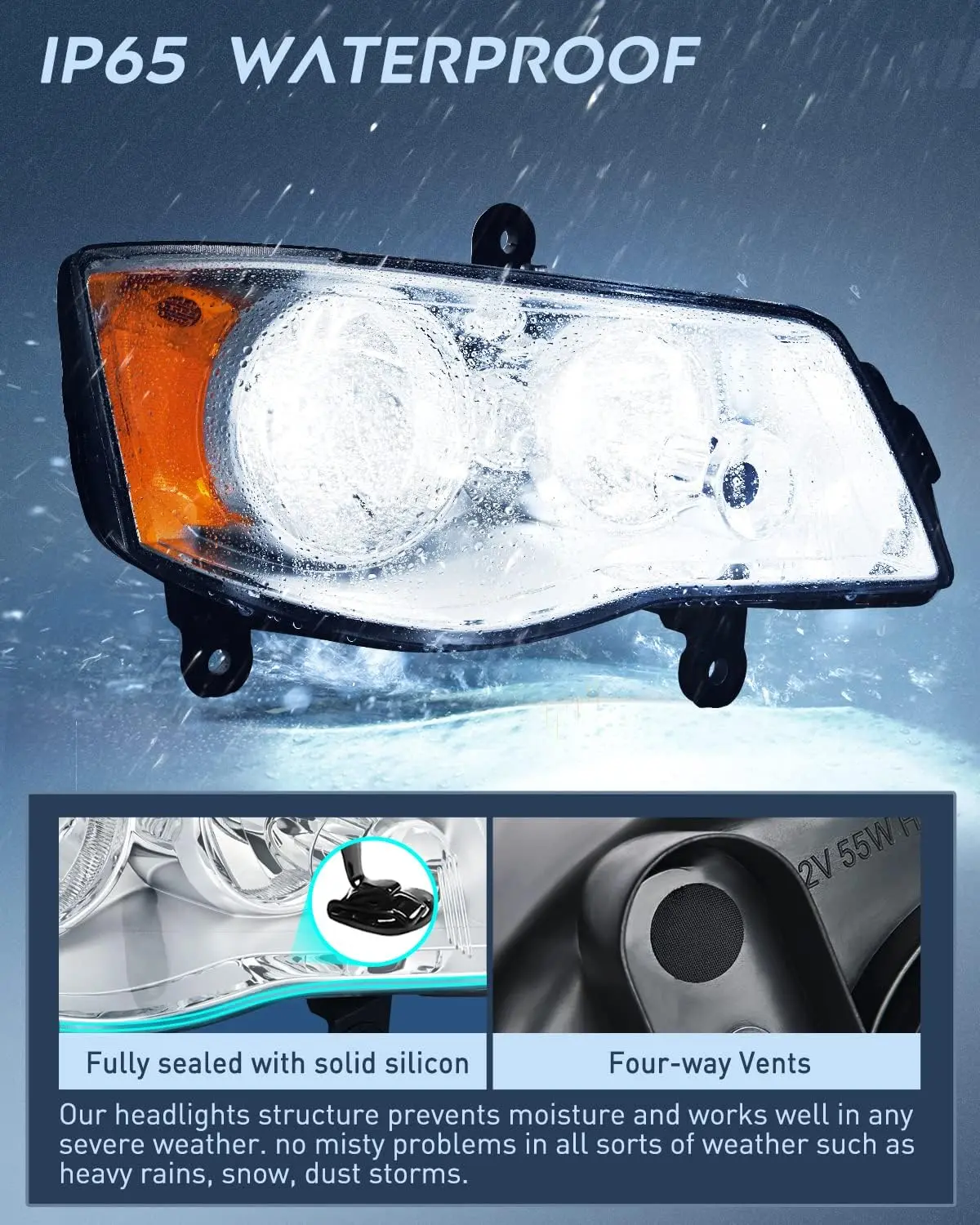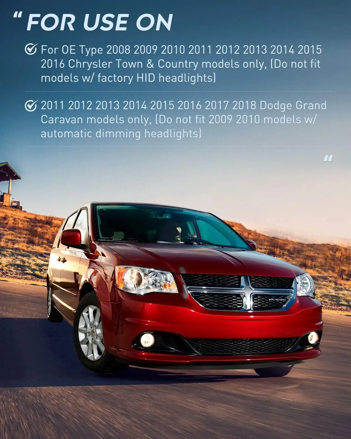 ·Compatibility: The headlights assemblies are compatible with 2011 2012 2013 2014 2015 2016 2017 2018 Dodge Grand Caravan and 2008 2009 2010 2011 2012 2013 2014 2015 2016 Chrysler Town & Country; bulbs are not included, use Stock Bulbs For Installation.