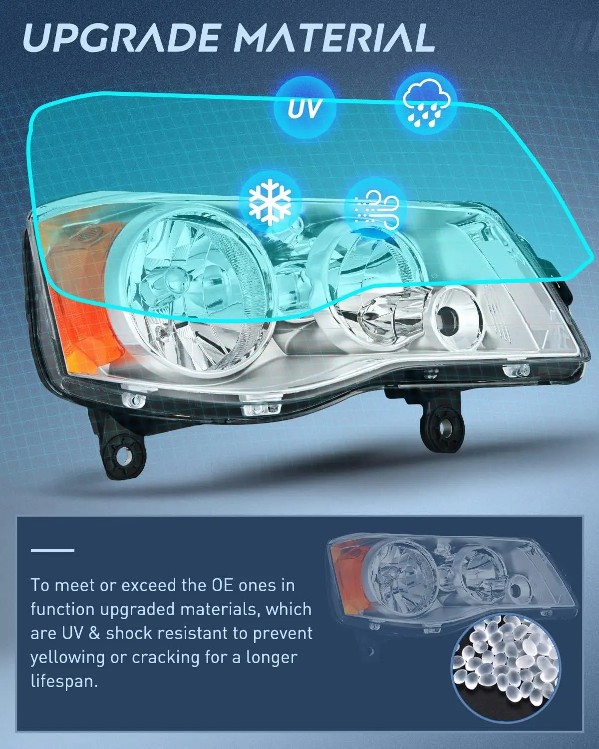 ·DOT Compliance and safe Driving: To ensure driving safety for you and the oncoming driving circumstance, our 2011-2018 Dodge Grand Caravan 2008-2016 Chrysler Town & Country headlights are DOT & SAE compliant. Our headlights provides clearer and further vision to see the wild animals, falling rocks or other obstacles at night. Reduce the possibility of danger.