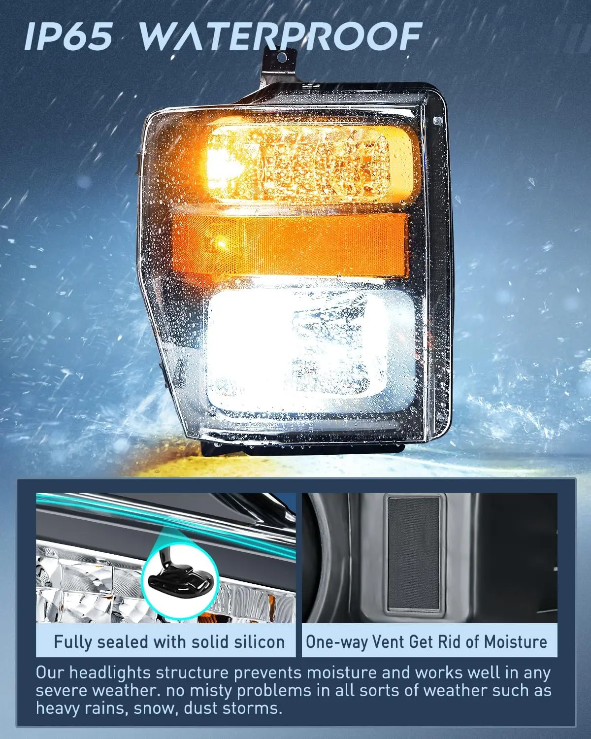 ·Durability: The high-impact housing withstands shock and vibration. With fully sealed silicon prevents environmental damages including freezing, foggy, fading, corrosion, and provides reliable service in sorts of weather conditions such as rain, snow, or dust storms, enabling your car looks better and drive safer