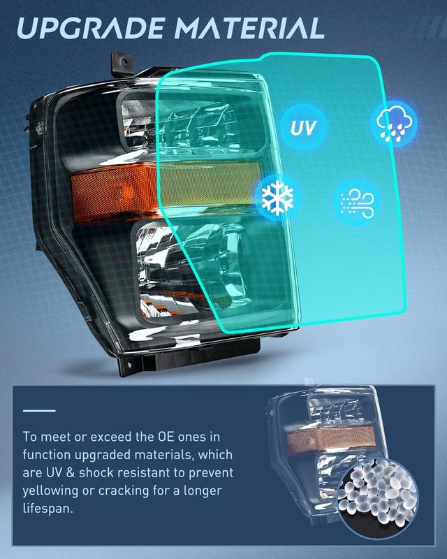 ·DOT Compliance and safe Driving: To ensure driving safety for you and the oncoming driving circumstance, our 2008 2009 2010 Ford F250 F350 F450 Super Duty headlights are DOT & SAE compliant. Our headlights provides clearer and further vision to see the wild animals, falling rocks or other obstacles at night. Reduce the possibility of danger.