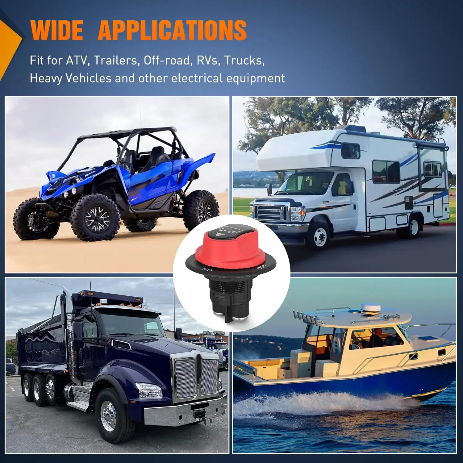 Compatible: used for 12 - 32VDC systems to isolate and secure the electrical system, can stand alone or be locked together with other switch. Widely used for cars, marine boats, RVs, campers, travel trailers, trucks, ATVs, UTVs, battery banks and other devices.