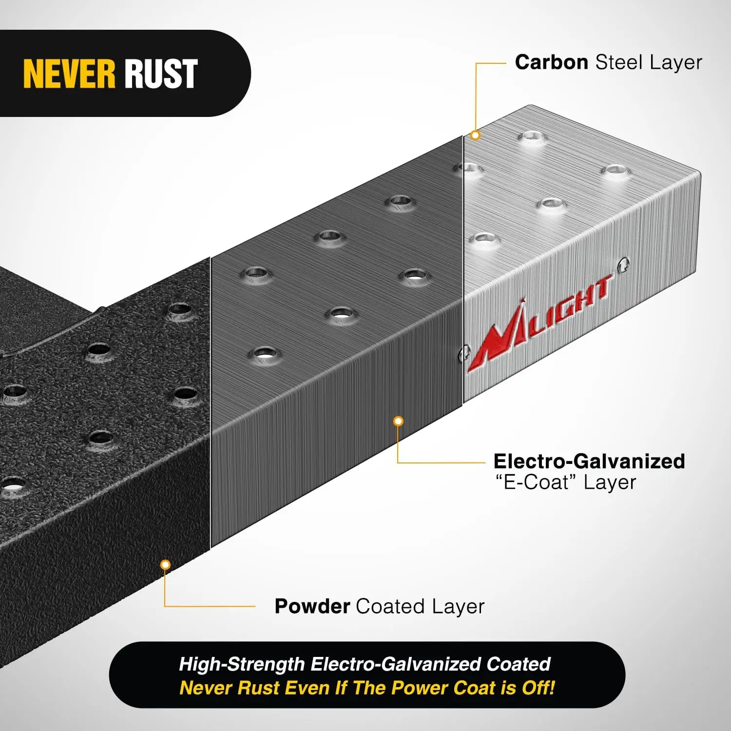·【User-Friendly Design】- Nilight Hitch Step is made simple and effective: its special non-slip surface keeps you steady, and it's covered with a strong rust-proof coating. This means it stays safe to use and looks good even after lots of time outside.