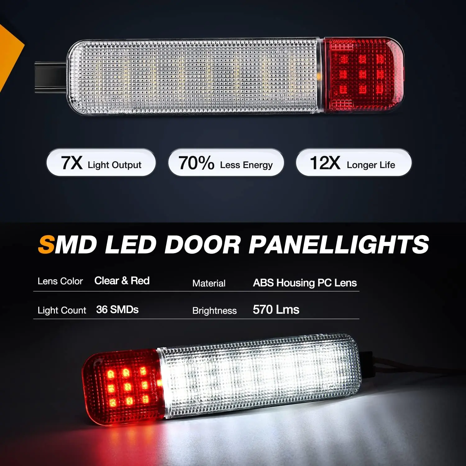 ·【Build to last & Super Bright】Made of premium ABS housing and lens, won't faded at long-time exposure. 6 times brighter than original incandescent bulb housing light. Built-in high power SMD LED chips to maximize illumination on the interior side doors.