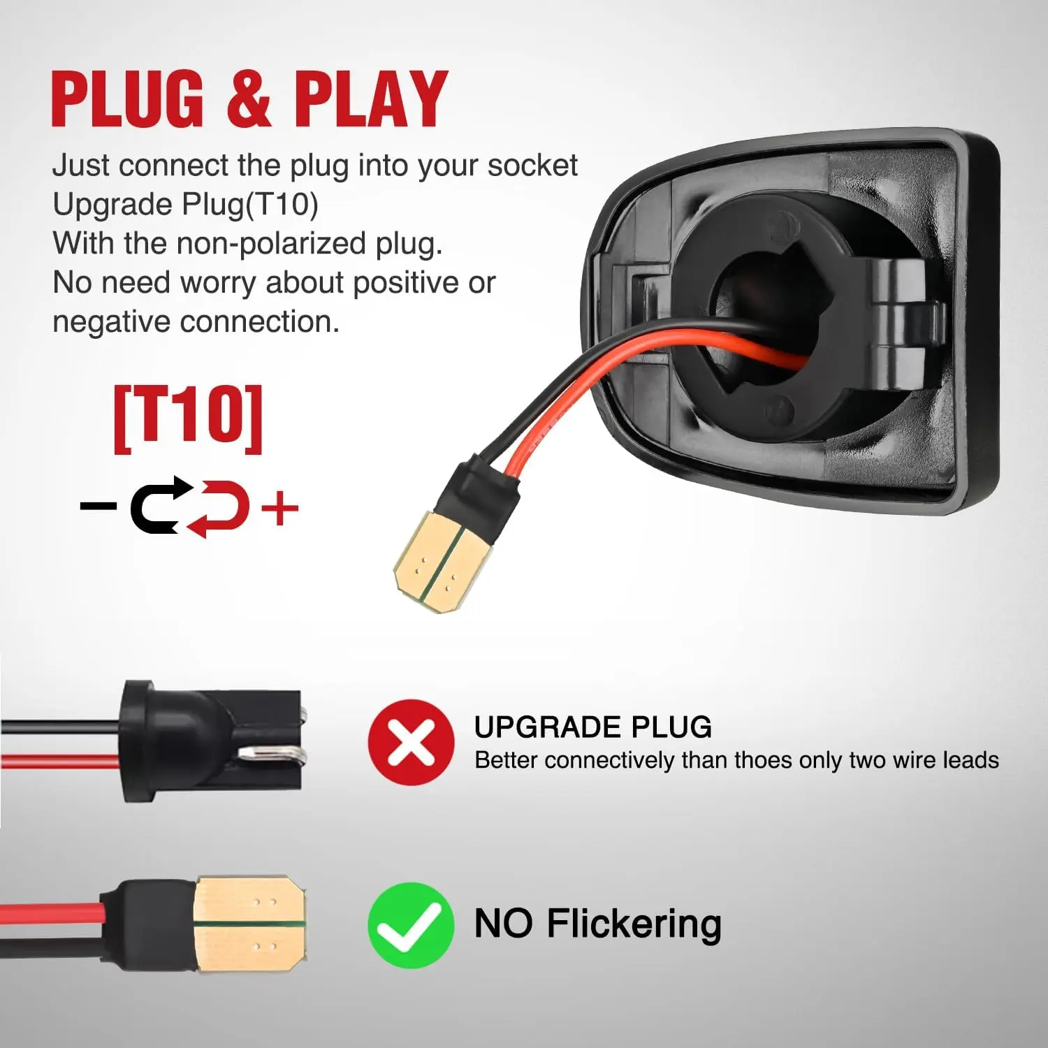 Plug and play, direct replacement for factory tag light, no just take out your original bulbs and insert the new plug into the socket. Non-Polarity, no need to worry about positive and negative connections.