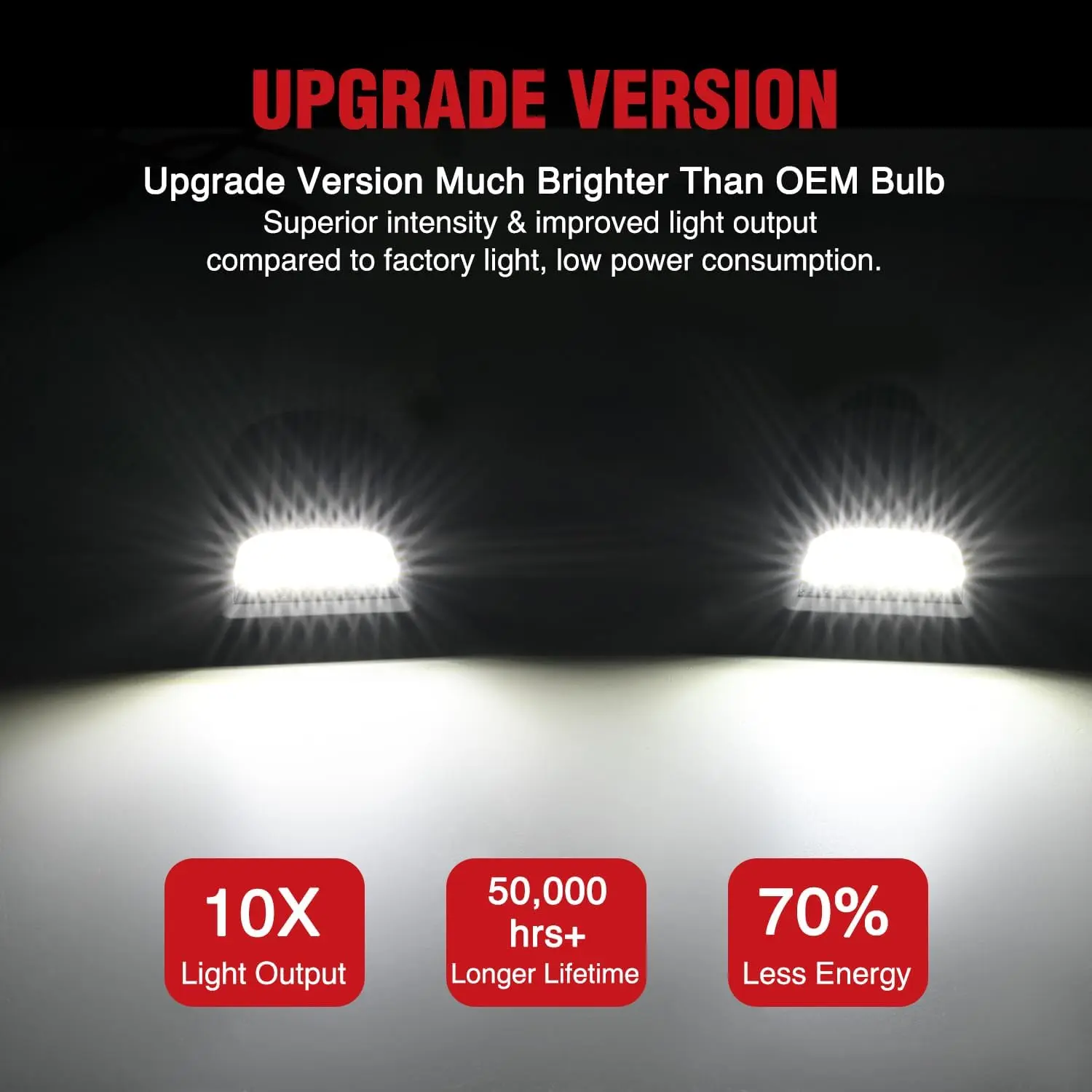 ·Packages Includes: a pair of right and left side LED license plate lights.