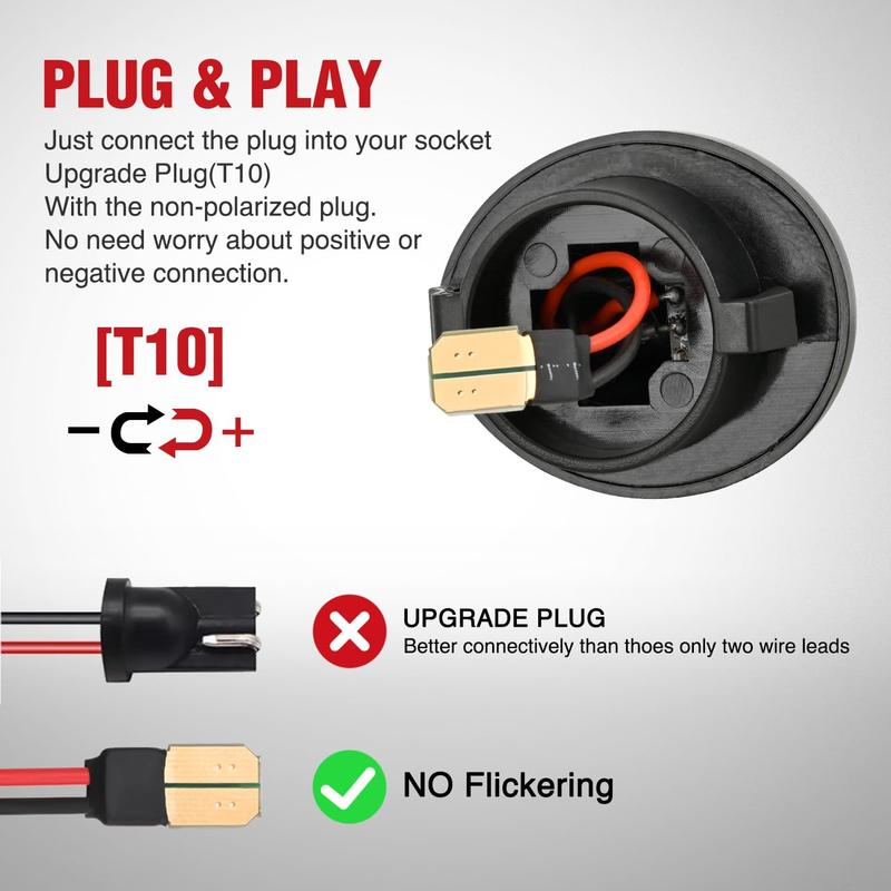 Plug and play, direct replacement for factory tag light, no just take out your original bulbs and insert the new plug into the socket. Non-Polarity, no need to worry about positive and negative connections.
