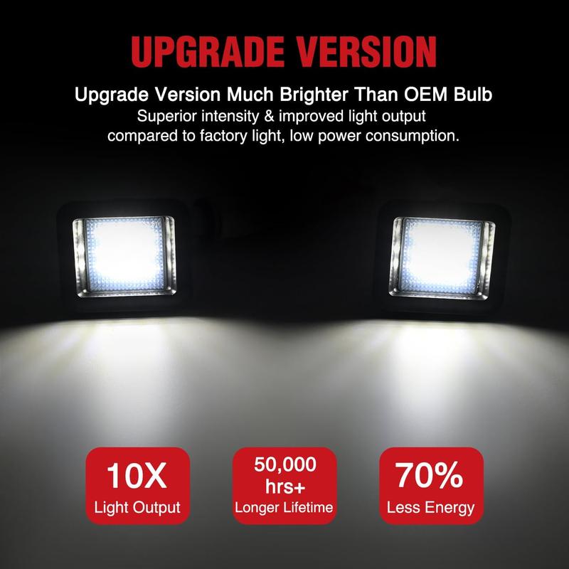 Built-in high power 18 SMD LED chips, super bright 6000k white light output effectively illuminate the license plate.led license plate light ensures that your Ford150 & Ford150 Raptor license plate tag light remains clearly visible in low light and nighttime conditions.