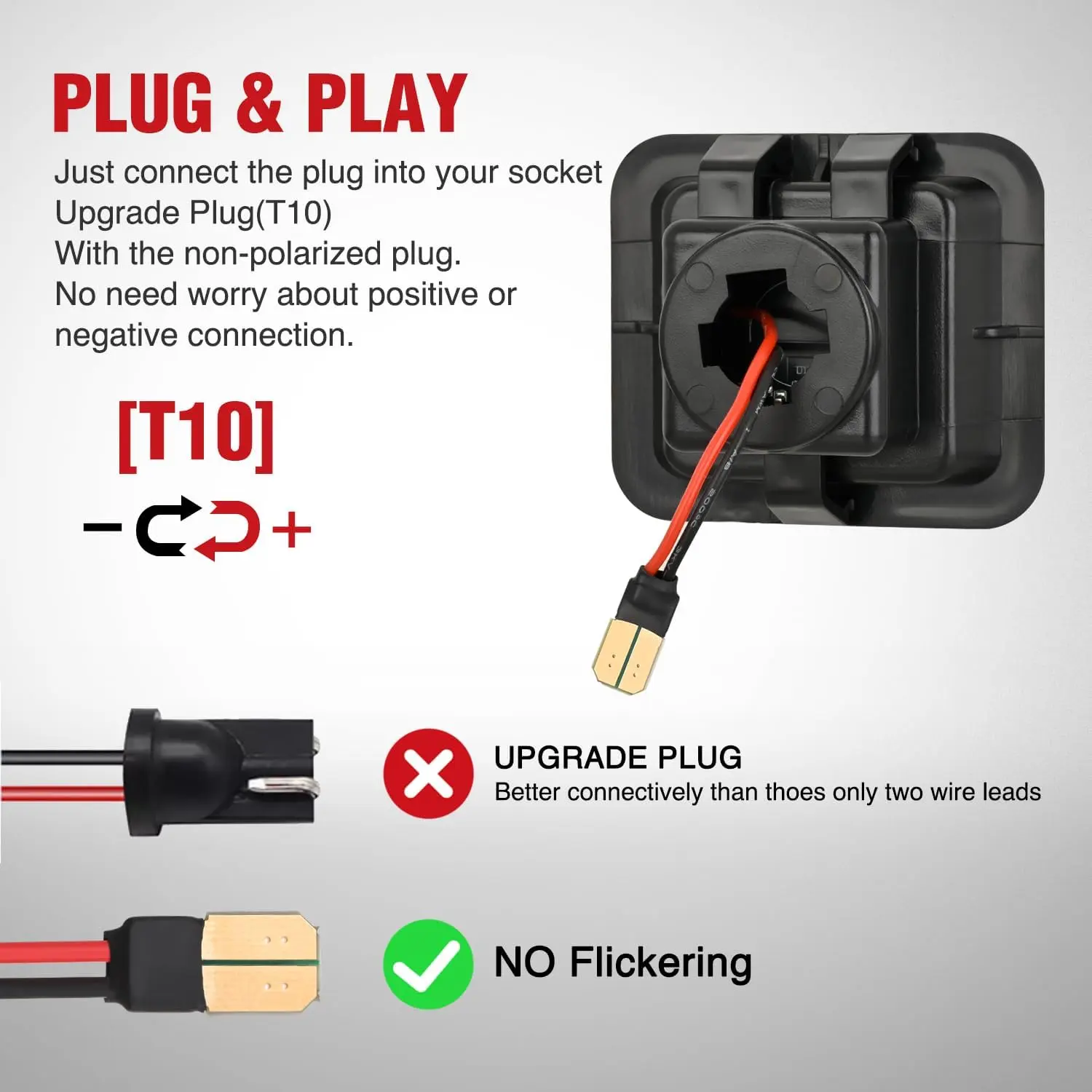 Plug and play, direct replacement for factory tag light, no just take out your original bulbs and insert the new plug into the socket. Non-Polarity, no need to worry about positive and negative connections.