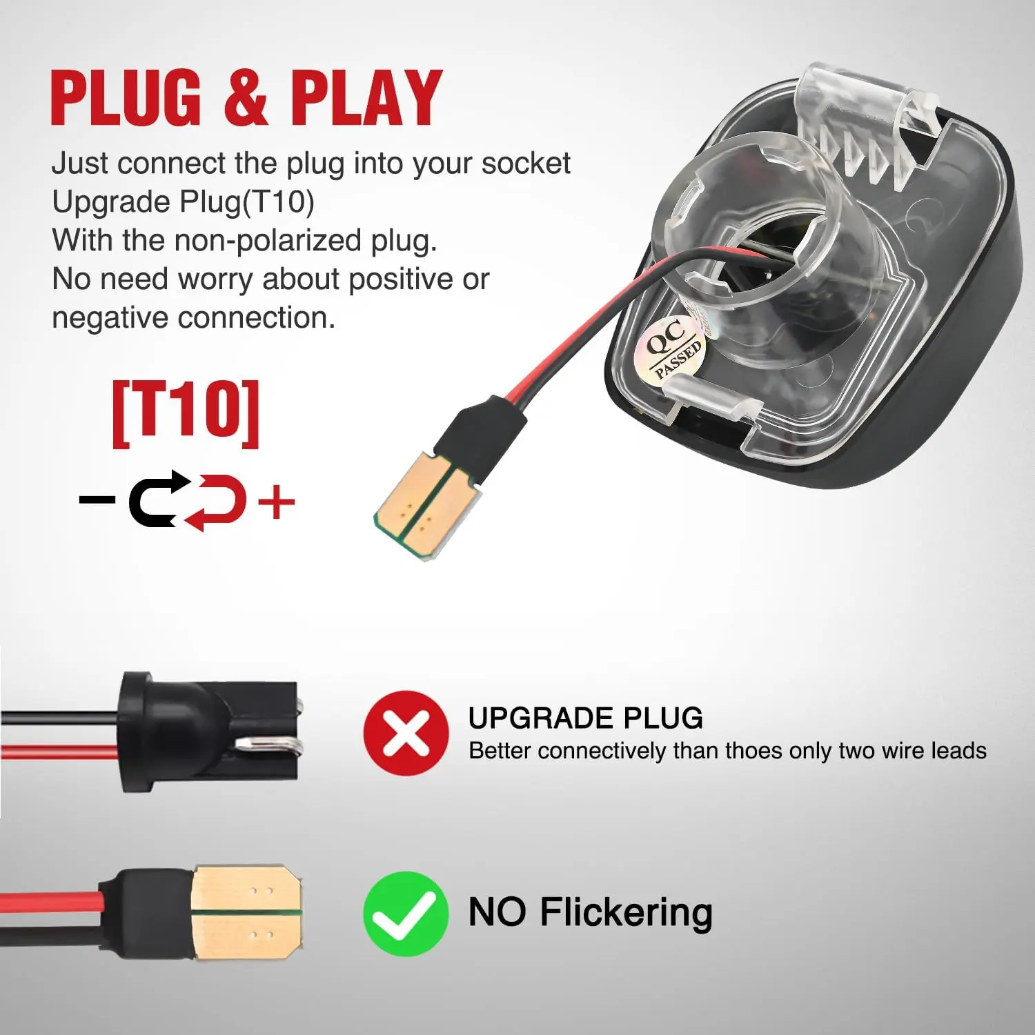 Plug and play, direct replacement for factory tag light, no just take out your original bulbs and insert the new plug into the socket. Non-Polarity, no need to worry about positive and negative connections.