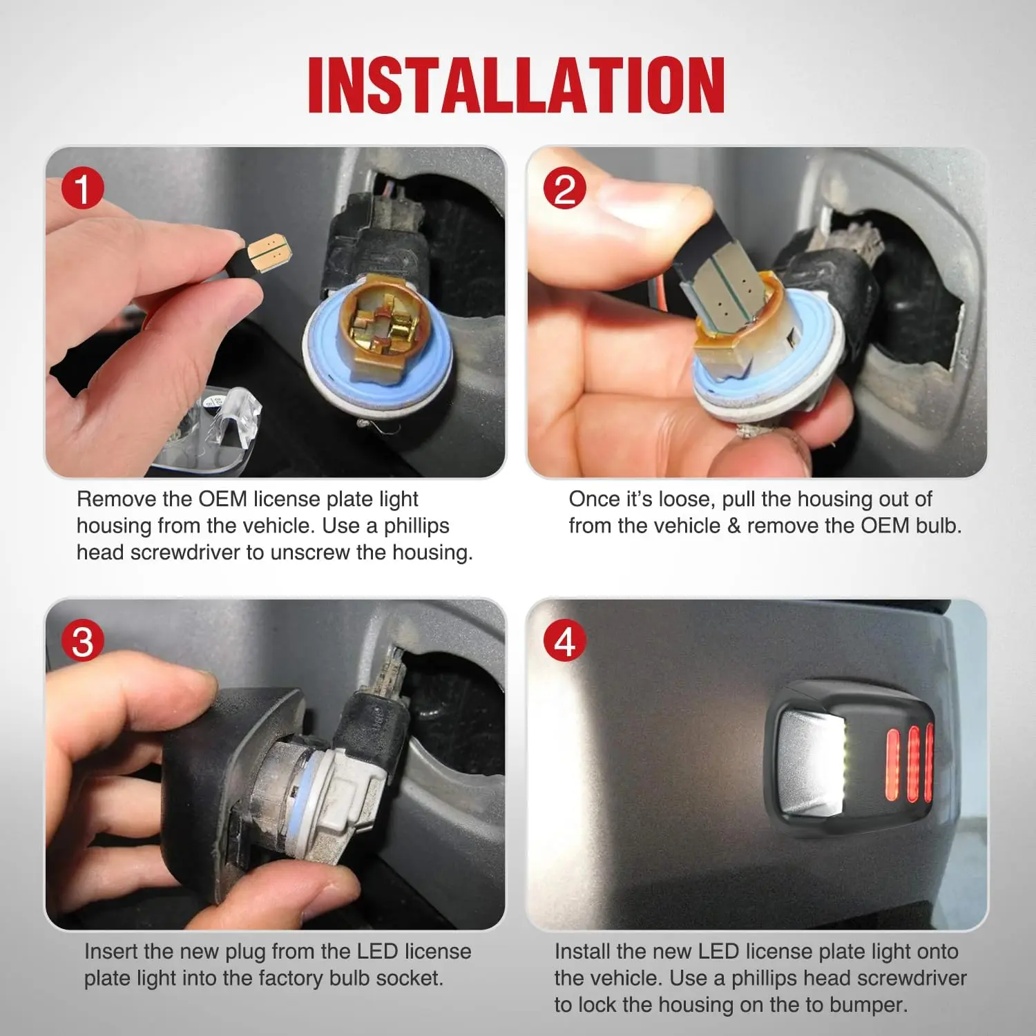 Plug and play, direct replacement for factory tag light, no just take out your original bulbs and insert the new plug into the socket. Non-Polarity, no need to worry about positive and negative connections.