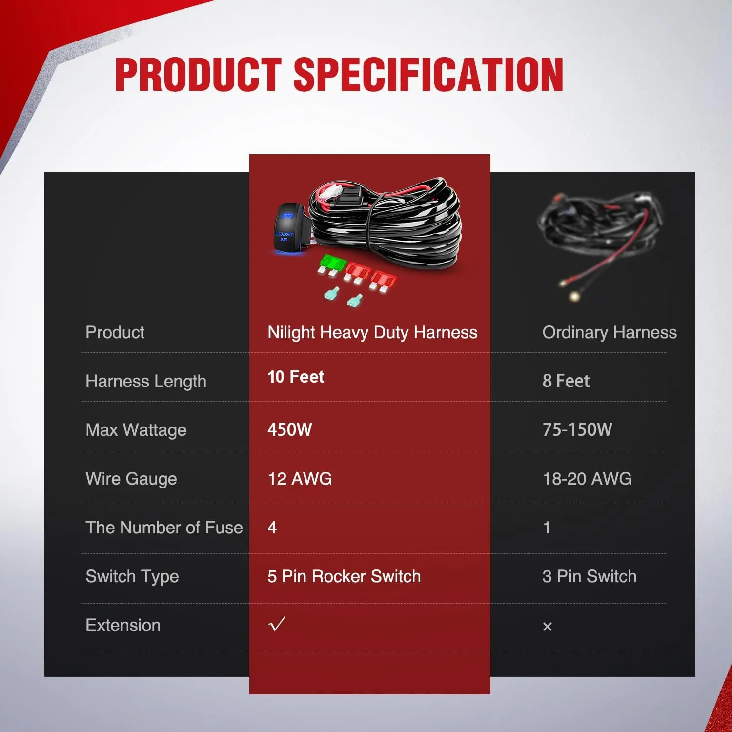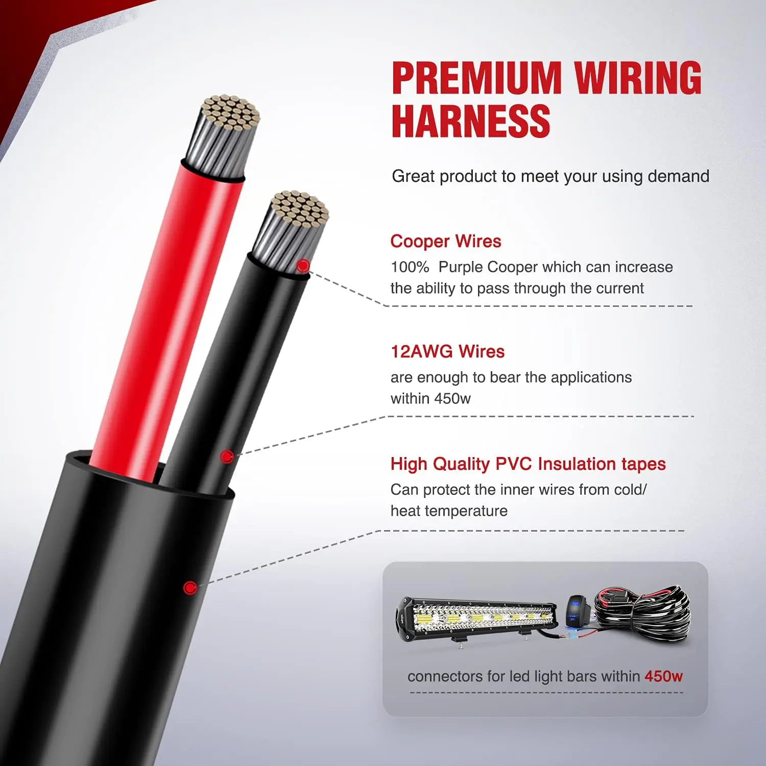 With one set of light output connectors, the wiring harness can hook up one LED light within 450W.