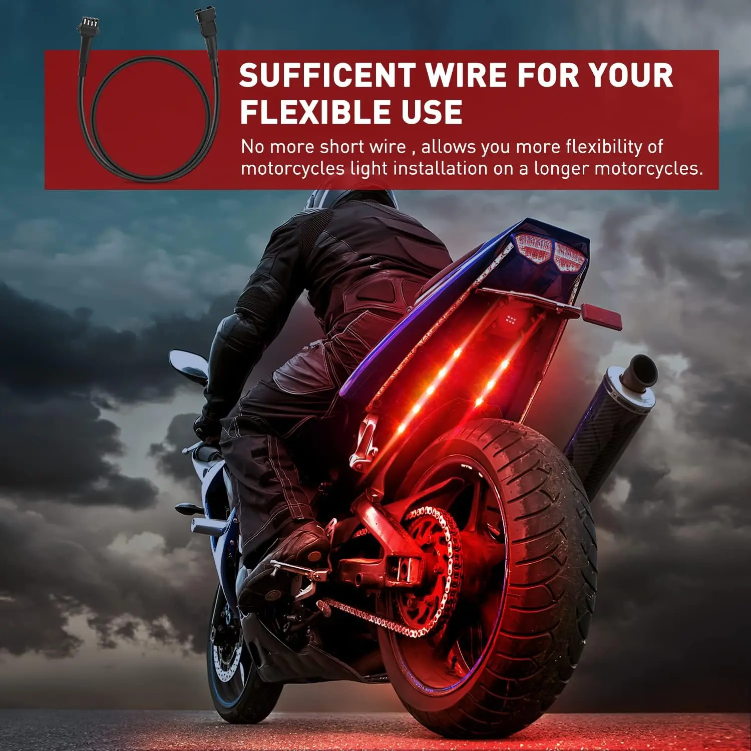 ·4 PIN Male Female Connector: Directly plug-n-play with the wire connector on controller box and wire connector on motorcycle light, extending motorcycle light wire length and getting your full flexibility for different motorcycle lights mounting position, even on a longer motorcycle. No more worries of insufficient wire length