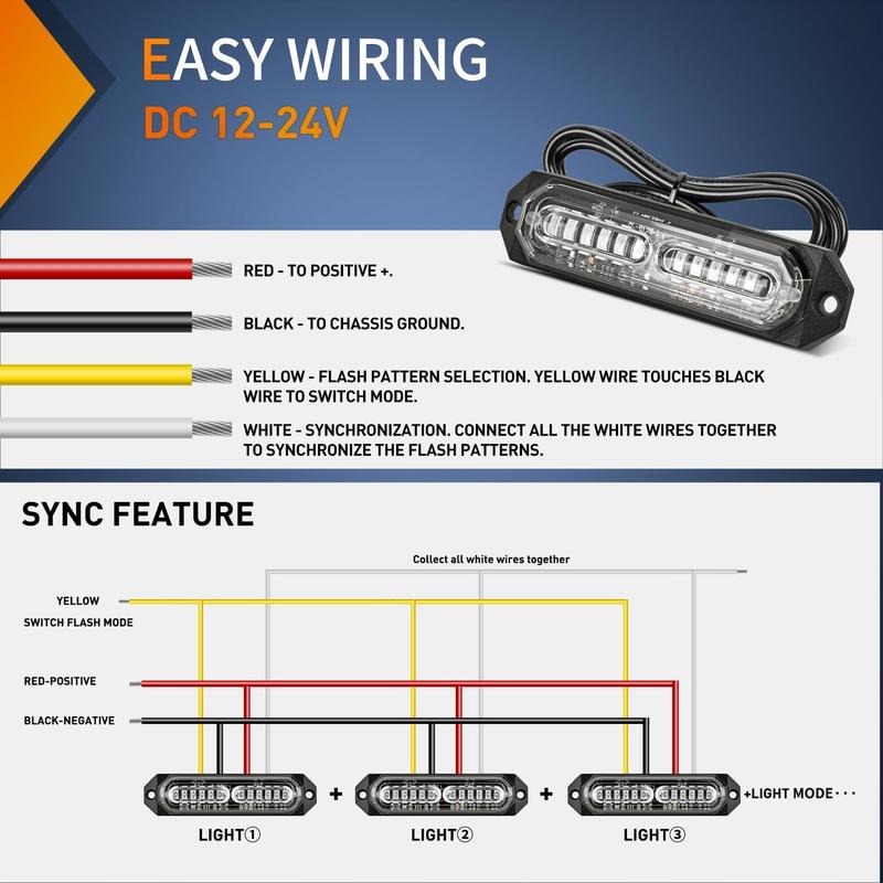 This strobe lights can even be installed on ATV, UTV, RV, Campers, SUV as long as your car is 12V or 24V.