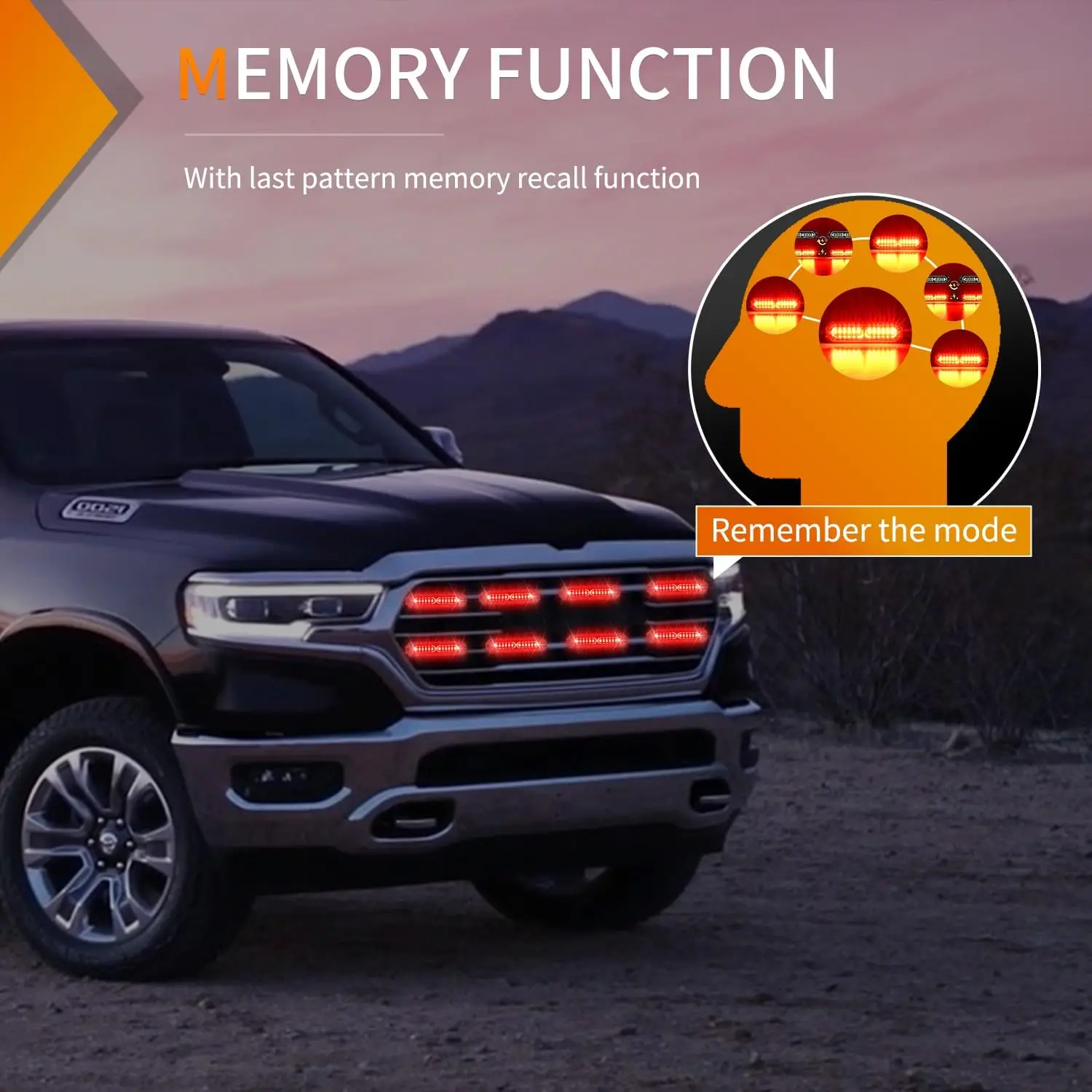 The lights have the last used pattern recall/memory function, no need to re-select the desired flashing pattern after each turn on the light.