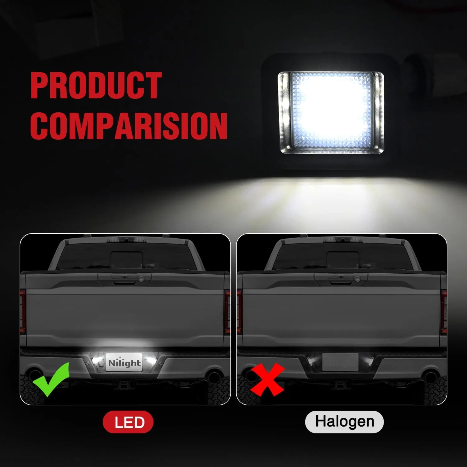 Built-in high power 18 SMD LED chips, super bright 6000k white light output effectively illuminate the license plate.led license plate light ensures that your Ford150 & Ford150 Raptor license plate tag light remains clearly visible in low light and nighttime conditions.
