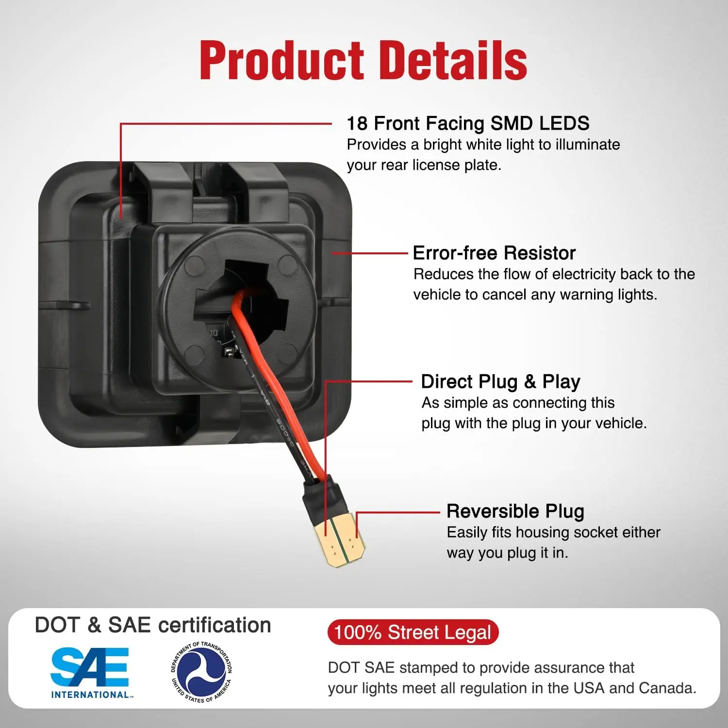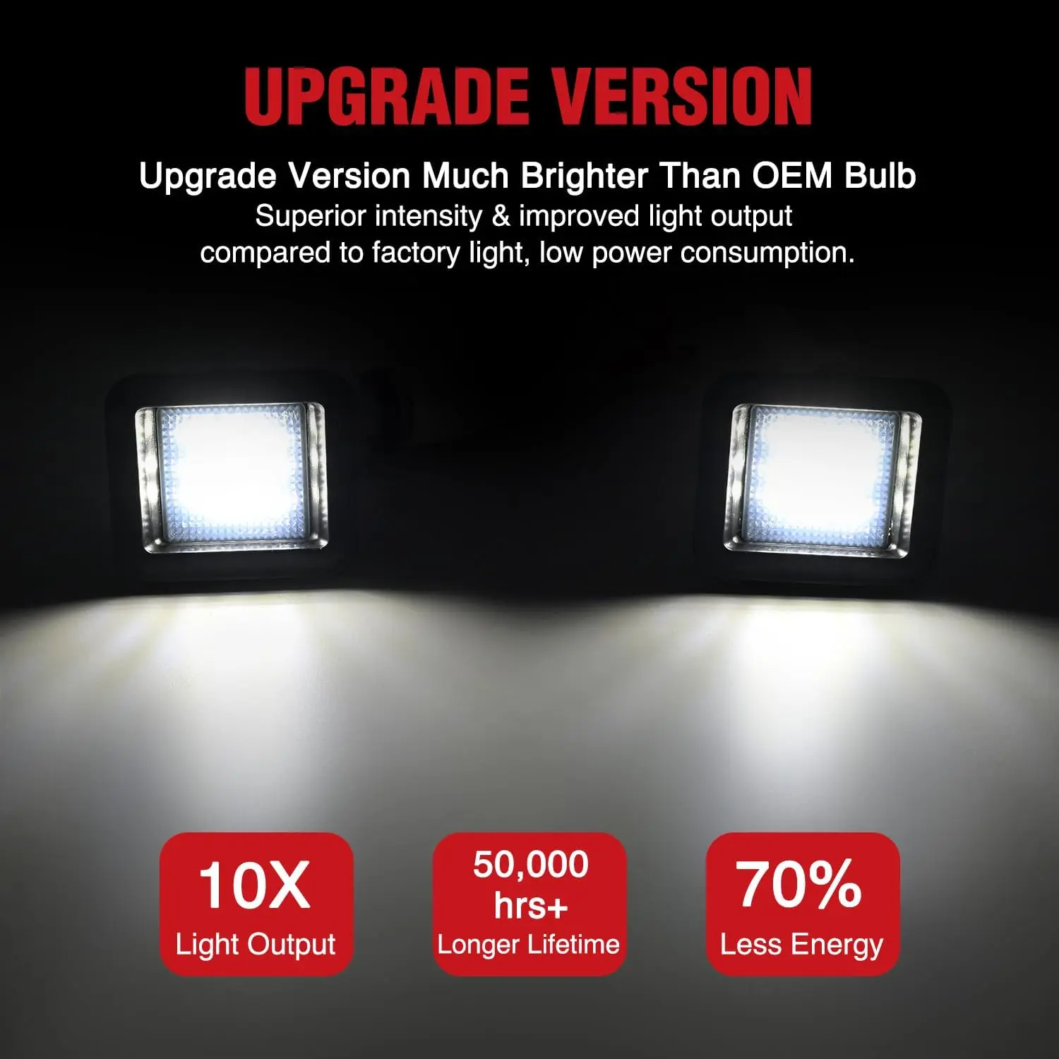 ·Packages Includes: a pair of right and left side LED license plate lights.