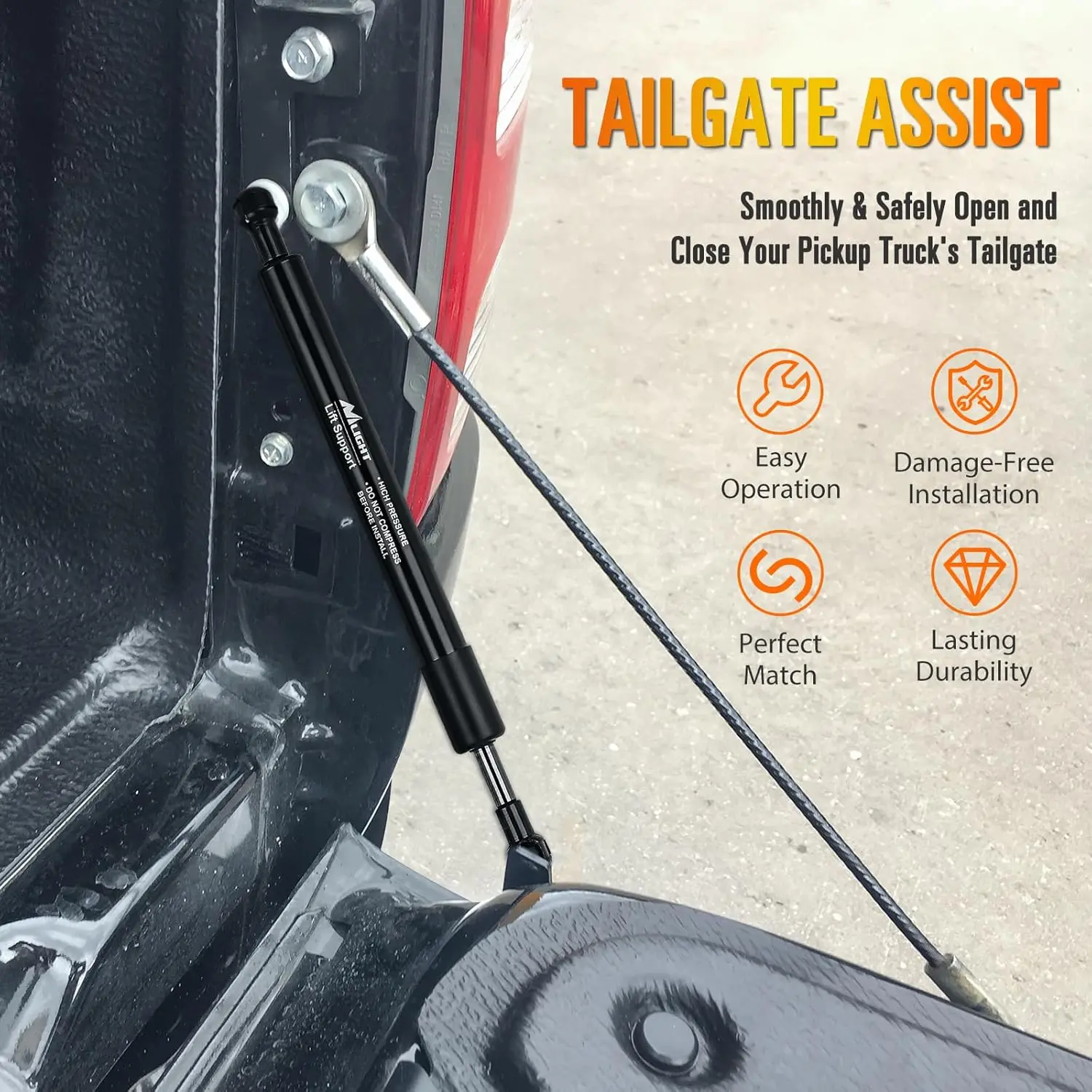 ·Quick & Hassle-Free Installation: Get started in minutes with our clear instructions. No drilling or taillight removal needed; just a few wrenches (M5 and 10mm) to securely attach the truck lift assist to your truck.