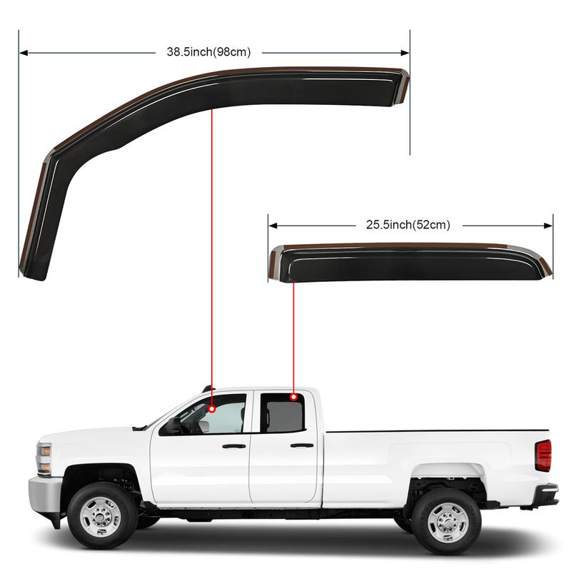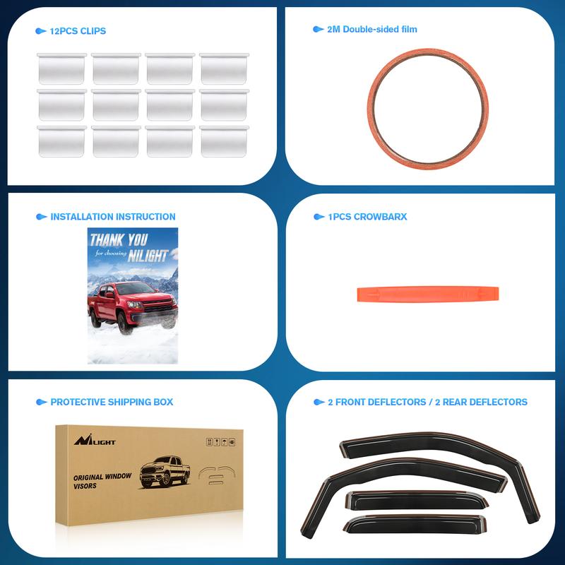 ·PERFECT FIT:Window Deflectors made with tough and shatterproof premium-quality acrylic, will not easy bend, break or crack.Designed with precise engineering data to ensure custom fit to your vehicle.Reduce interior wind noise and reduce glare during night driving.