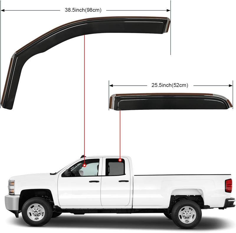·PERFECT FIT:Window Deflectors made with tough and shatterproof premium-quality acrylic, will not easy bend, break or crack.Designed with precise engineering data to ensure custom fit to your vehicle.Reduce interior wind noise and reduce glare during night driving.