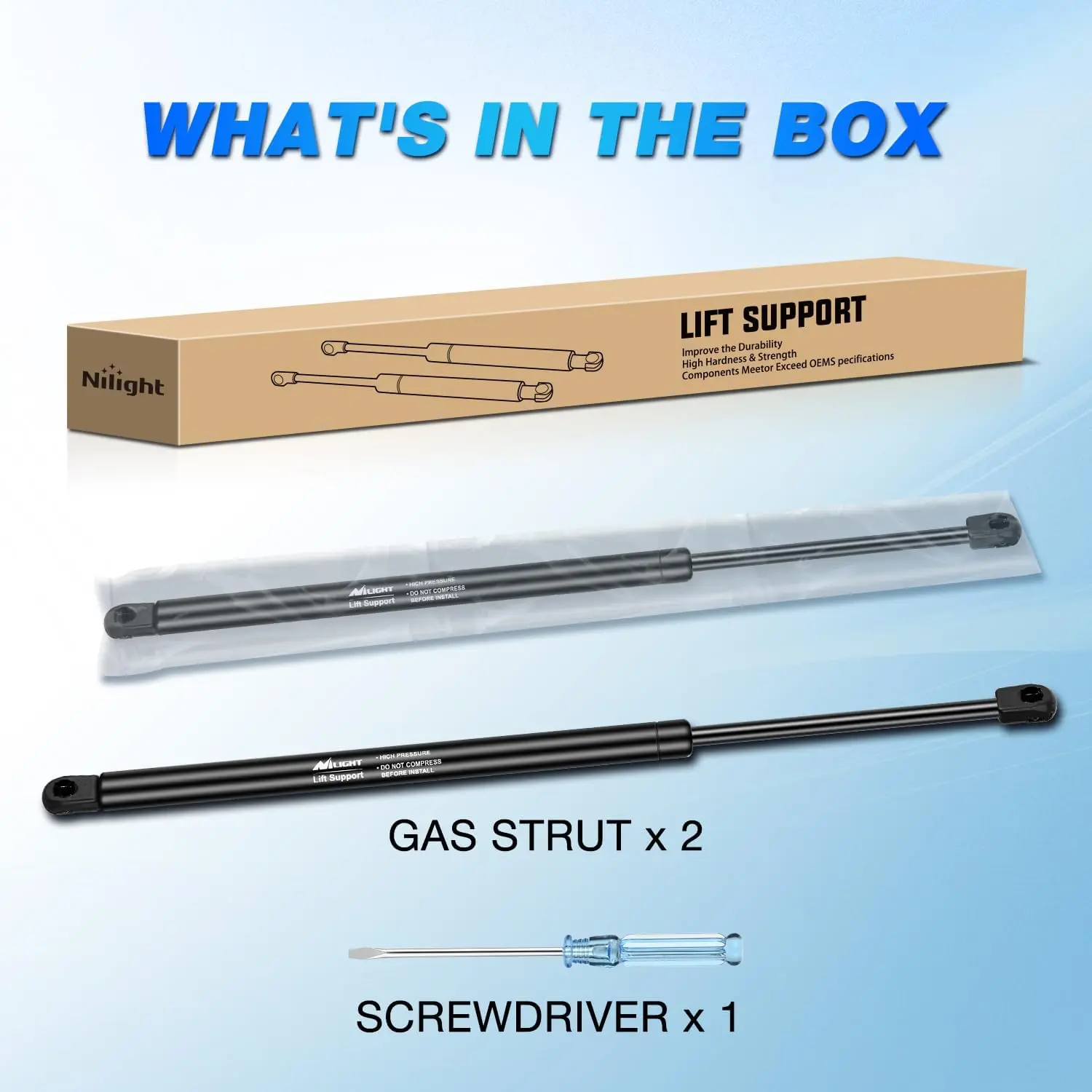 ·5 Minutes Installation: Nilight lift gate support struts are easy to install, no experience is required, a small flat-blade screwdriver allows you to complete the replacement installation within a few minutes, we provide a screwdriver with the order, you do not need to find another tool.