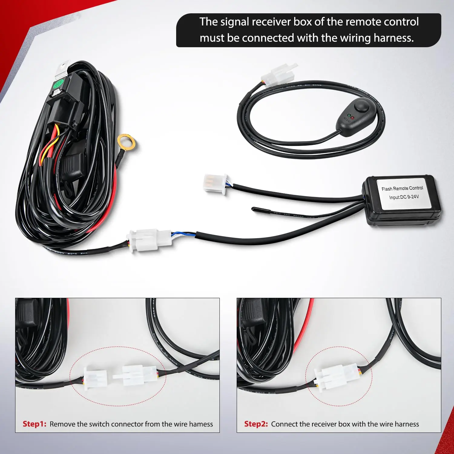 The signal receiver box of the remote control must be connected with the wiring harness.