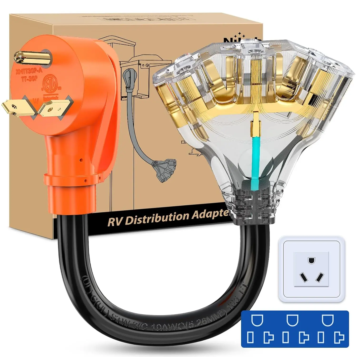 ·Package includes: 30AMP to (3) 15/20 AMP RV distribution adapter cord.