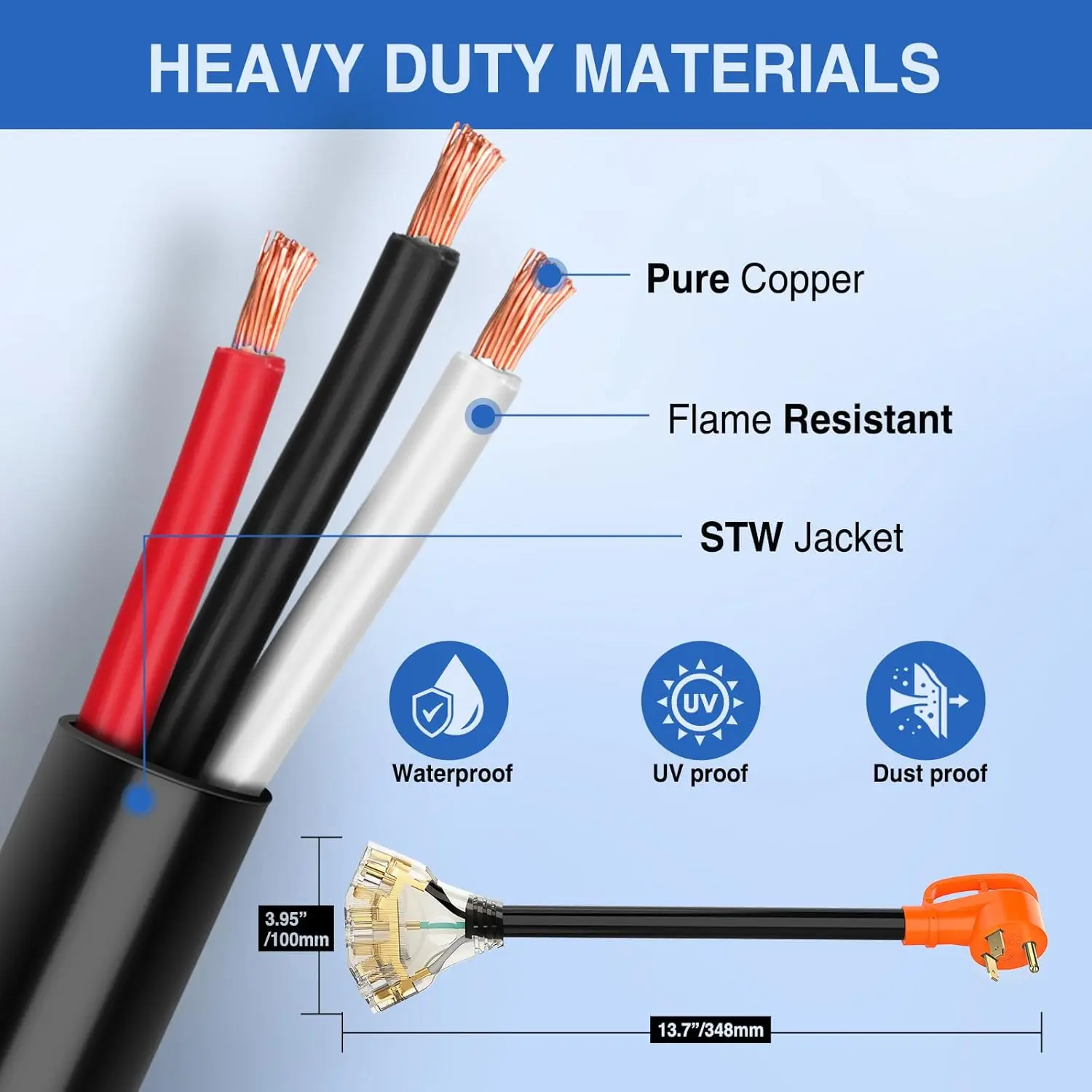 Constructed with 100% pure copper with full 10 gauge wires, ensuring high conductivity.