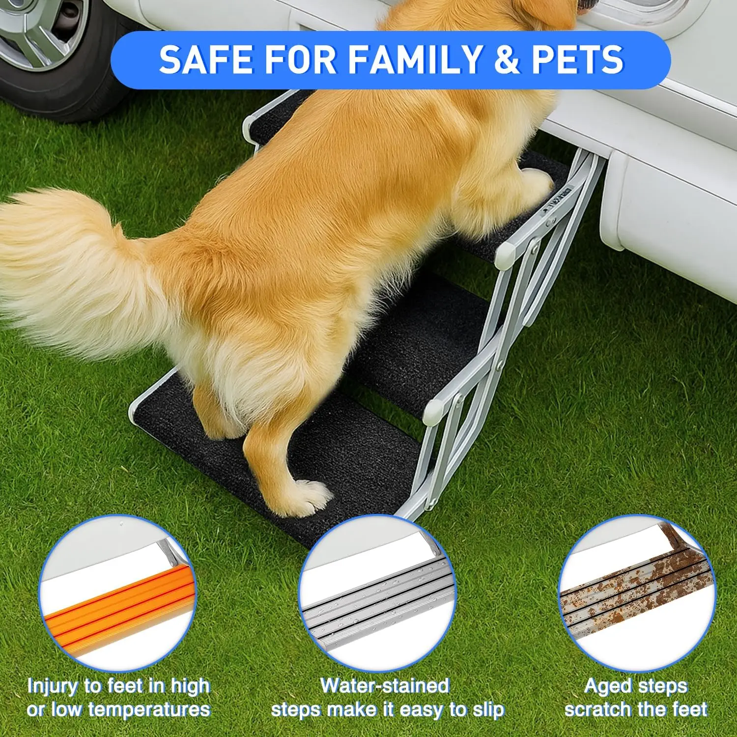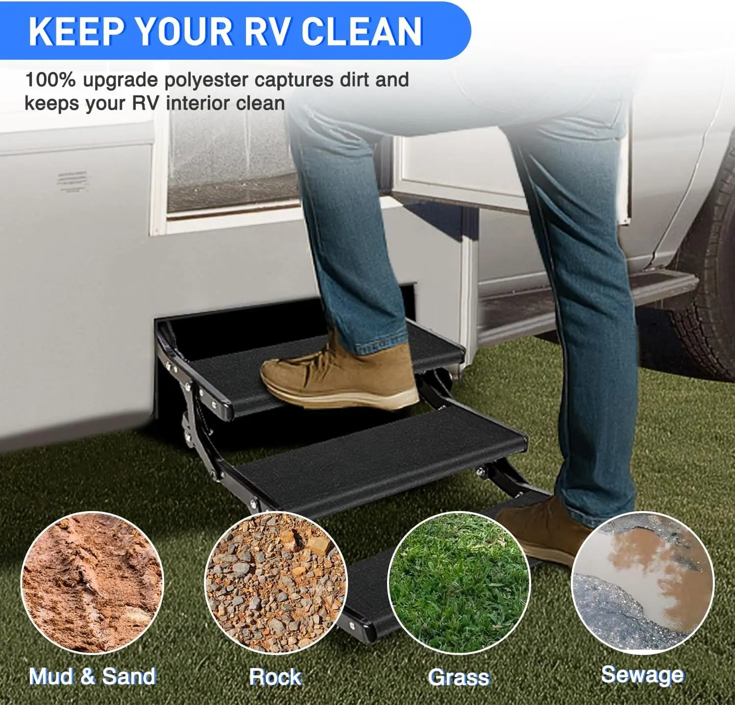 ·KEEP RV CLEAN & PROTECT FEET: The camper step covers crafted from high quality polyester, this RV stair carpet traps dirt to keep your RV interior clean and saves cleaning time, while protecting pets and family from hot metal surfaces and reducing slip risks for safer stepping