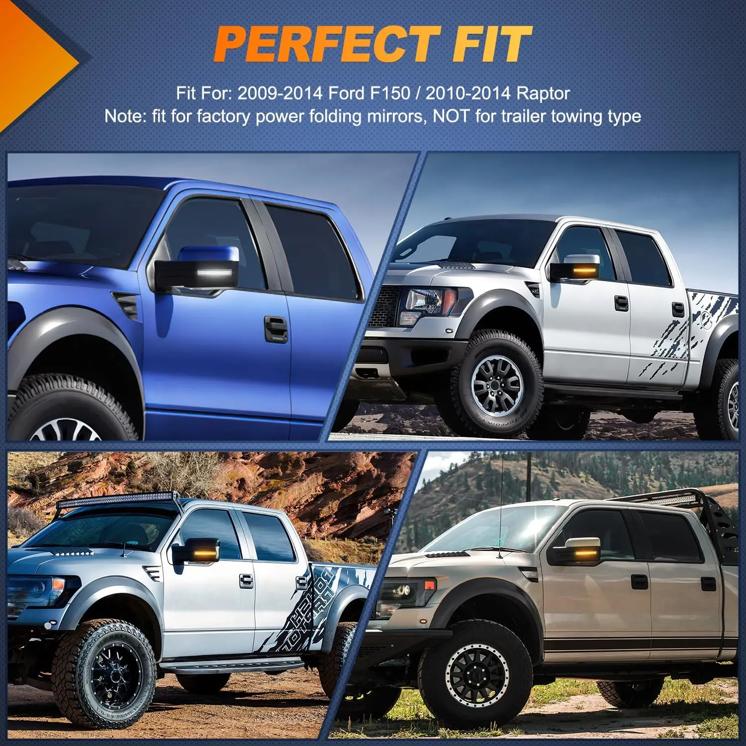 Compatible With: 2009 2010 2011 2012 2013 2014 Ford F150, 2010 2011 2012 2013 2014 Ford Raptor (fit for factory power folding mirrors)