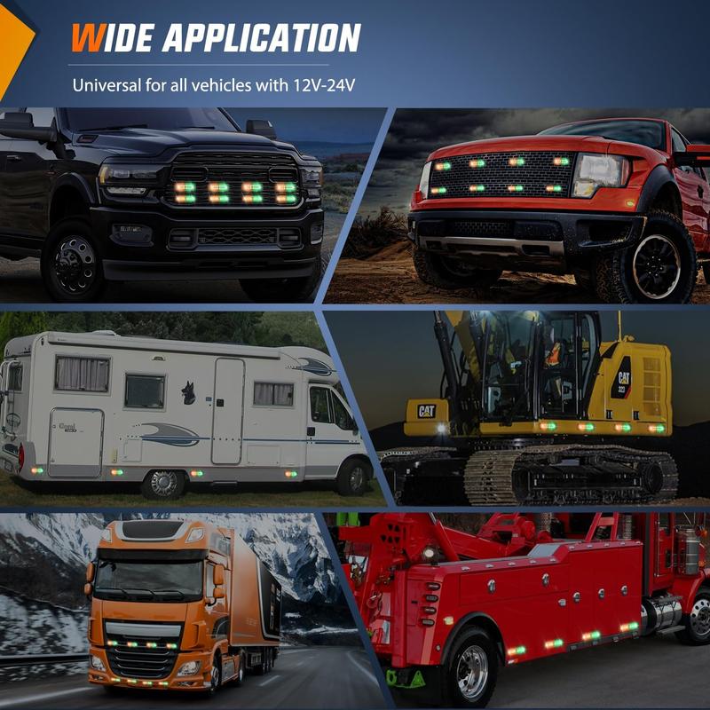 ·Application: This strobe light is suitable for construction vehicles, tractors, snowplows, or any 12V-24V vehicle. It can be installed on any surface of the vehicle, such as the side of the body, front grille, and rear. Package includes: 8 LED strobe lights, 1 control panel, 1 main control box, 1 power cord, 1 cigarette lighter plug, 8 rubber pads, mounting screws and nuts.