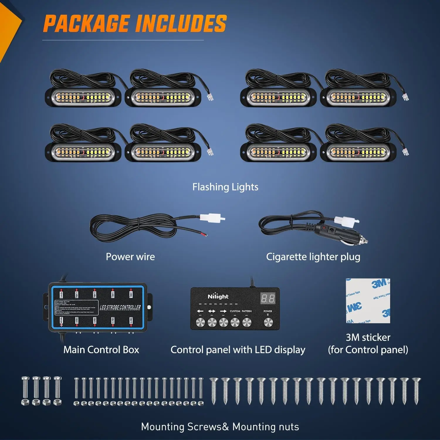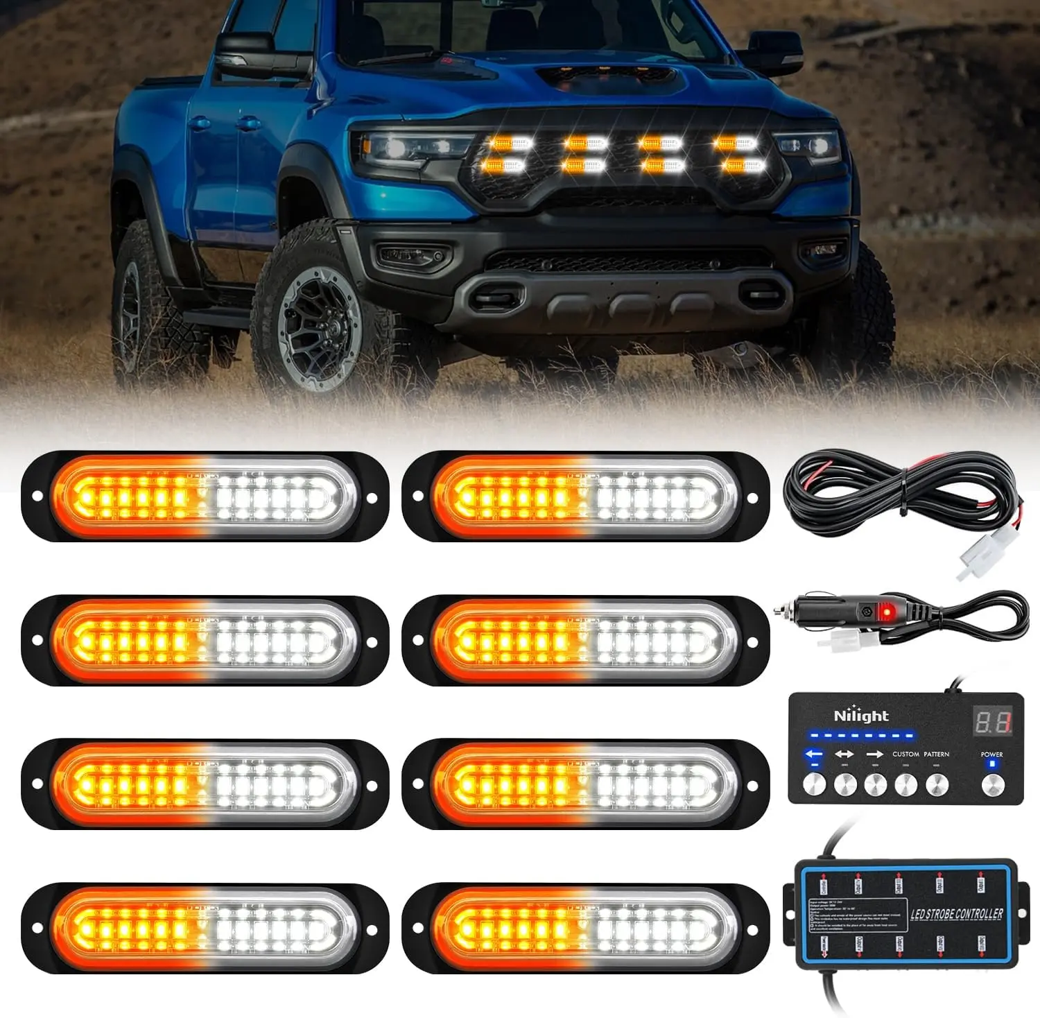 ·Super Bright and High Visiblity: Nilight 8Pcs Surface Mount Strobe Lights are consists of 8pcs single row 12 LED chips, provided maximum illuminate coverage and be visible from greater distance. Visible in daylight, midnight, rainy, foggy or snow days