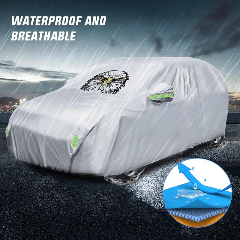 ·【Premium Material】Made of an upgrade high-density 210T Oxford cloth that's lightweight yet durable enough to protect your car, the maximum tensile strength up to 20 MPA. The textile of fabric is waterproof and heat insulation, yet air permeable and fast drying.