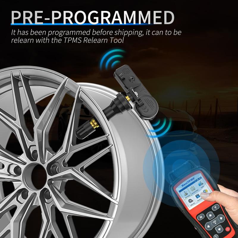 ·Perfect Function: The tire monitoring accuracy and sensitivity are high, and the tire pressure monitoring sensor is perfectly matched with the front and rear wheels, left and right sides. The tire pressure monitor system (TPMS) come pre-programmed specifically for your make/model/year of vehicle,just need activate them with scan tool.