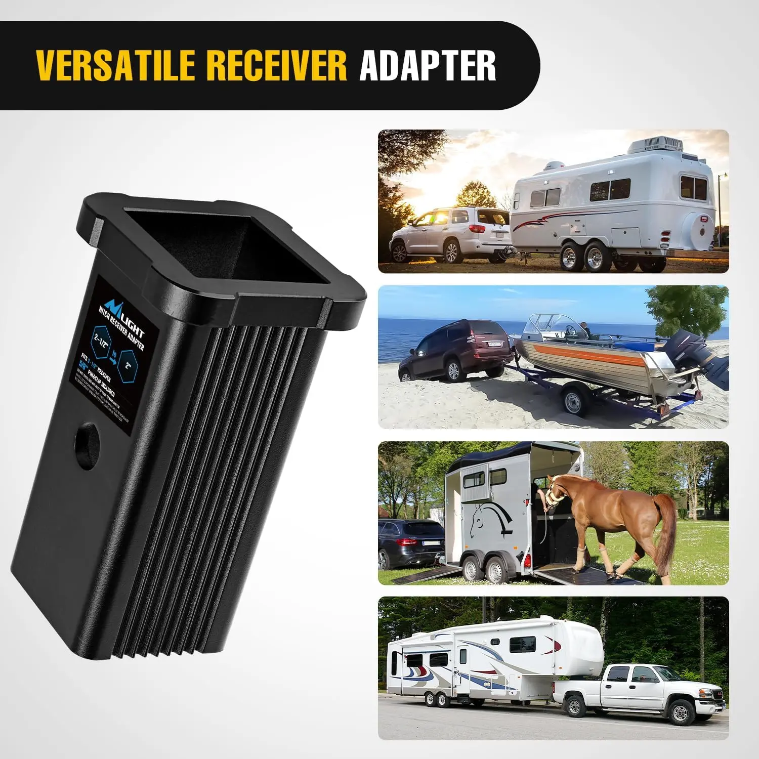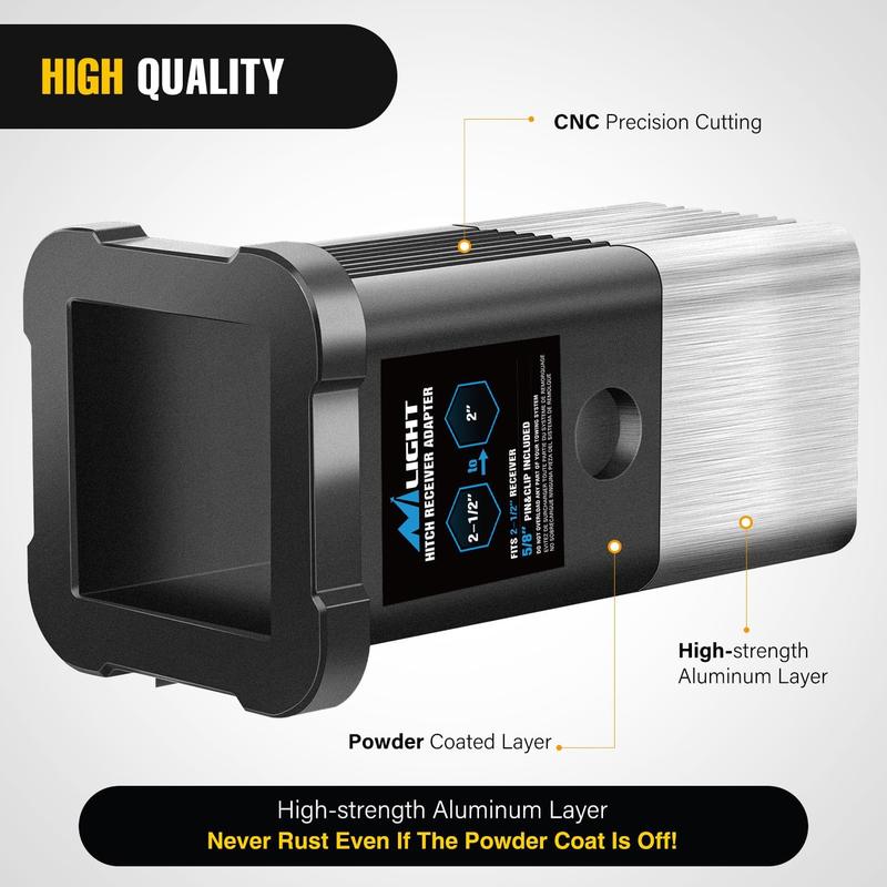 ·【PACKAGE INCLUDED】- 1x 2-1/2" to 2" Receiver Hitch Adapter with Hitch Pin and Clip. Pin and Clip for tight fit on the hitch, prevent relative rotation.