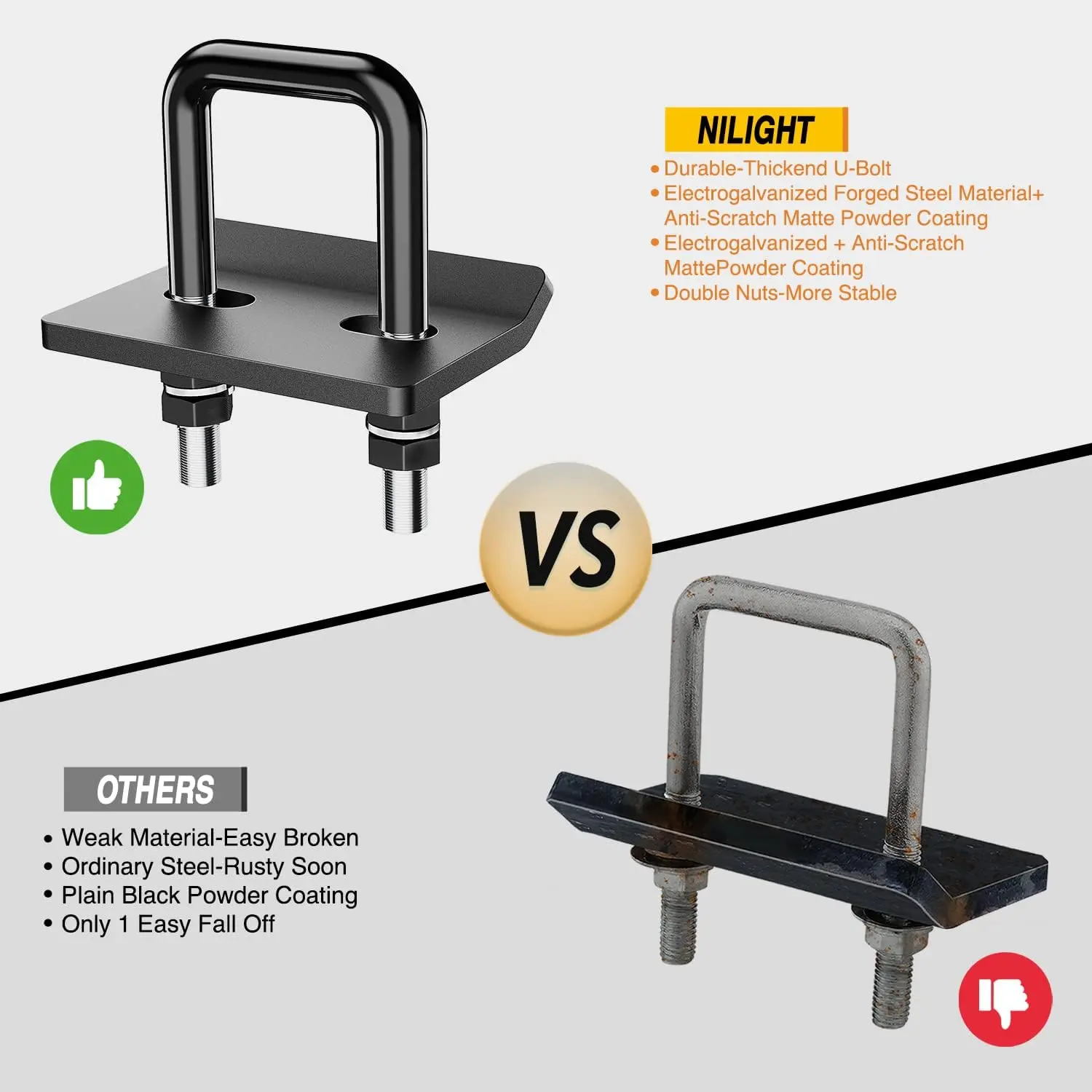 ·【EASY INSTALLATION】Simply slip the U-bolt over the receiver, slide the tightener plate into the bolt, and tighten into place with the included hardware