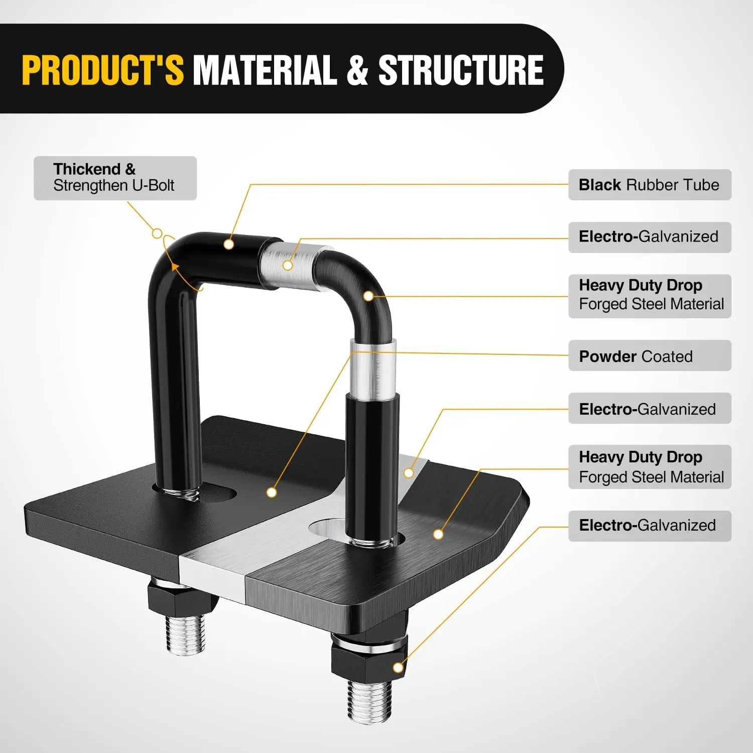 ·【PROTECTIVE RUBBER TUBE】Add rubber tube on a galvanize and powder coated U-bolt, which can reduce the risk of scratches, chipping and corrosion in any weather, extending the life of the kit
